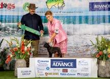 Brighton Kennel Club was the first show for the month with the young Staffordshire Bull Terrier Ch Bustabones Black With Two owned by Bustabones Kennels taking top spot under Kay Sneath he also took out Best In Show at one of the 3 shows held at Cradle Coast under Sue Bownds. Other win ners for the weekend were the Weimaraner Su preme Ch Arnhill Standing Room Only owned by Josh Turner under A Bowe and the French Bulldog Ch Dentellieres Cat Among The Pigeons owned by Jessica Harrison under J Black. The Golden Retrie ver Club held 2 Championship Shows in the South with Ch Oceanviews Methode Tasmanoise owned by Jenny Bliss taking top honours under specialist Ruth Thompson and the pm show under Interna tional judge Mrs W McFarlane (UK) Supreme Ch Kaparla Game Plan owned by Heather Morrison got the nod for Best In Show.