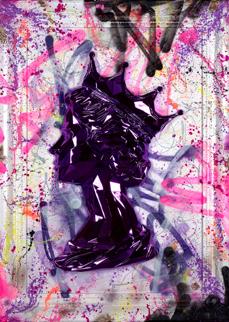 He is bold and confident in style transforming celebrity icons or endangered wildlife with a range of mixed media