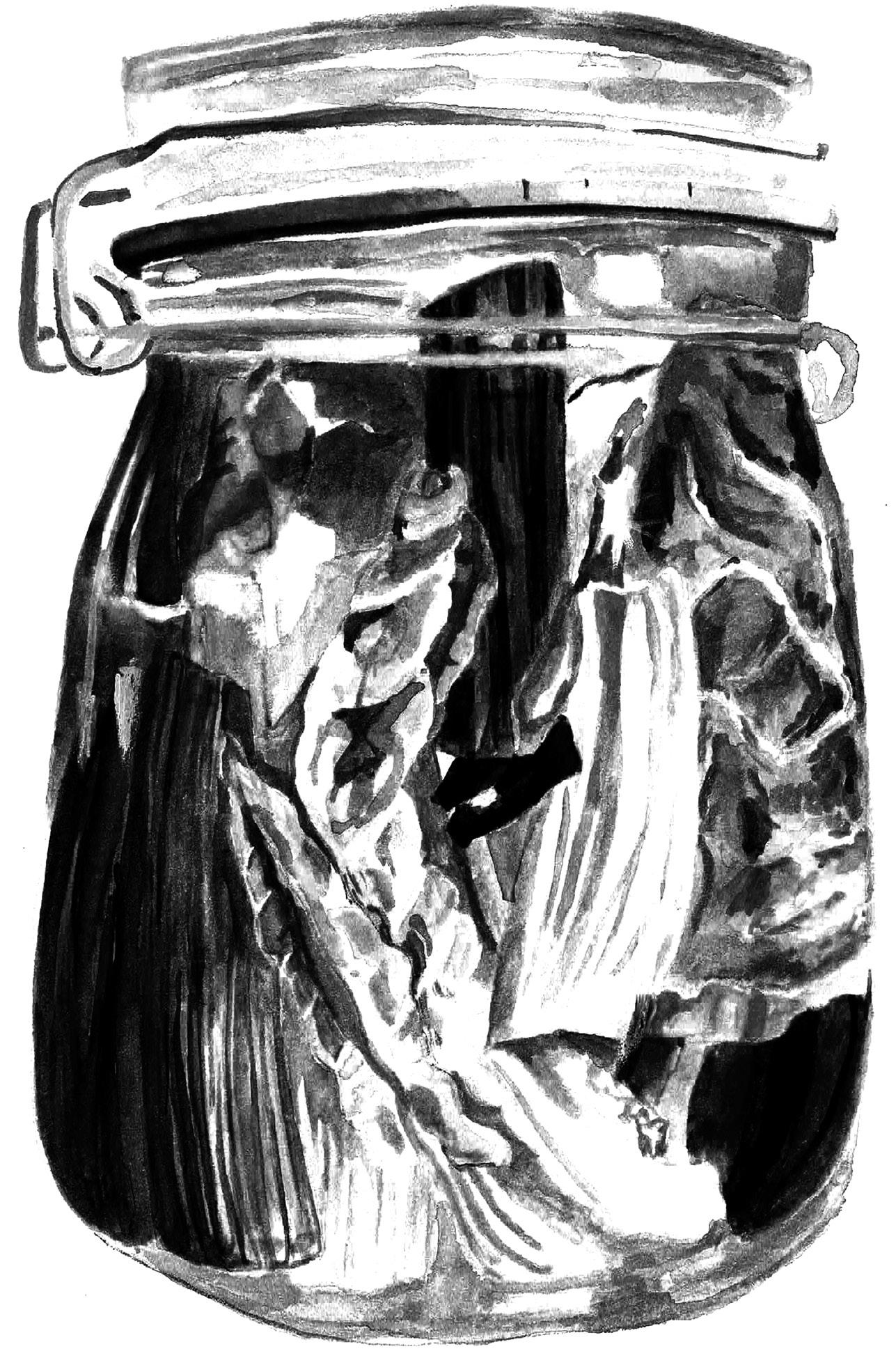 In the meantime, I invite you to imagine the larger community of people in the city who have the same jar of pickles sitting in their window. I also invite you to research the human microbiome, and become acquainted with the many bacteria, fungi, and yeasts that live in and on our bodies. Some of these bacteria and yeasts from our skin (and vegetable skin) are busy fermenting the vegetables in the jar. These communities make the unique flavour of the pickles. When you open the jar to taste the pickles, you are feeding the bacteria and yeast communities in your mouth and they help you break down and digest the food. It is a reciprocal relationship. There are over 30 trillion micrograms of bacteria living with us in our bodies, and they outnumber human cells by 10 to 1. Therefore, we are many, or maybe we are not human at all!