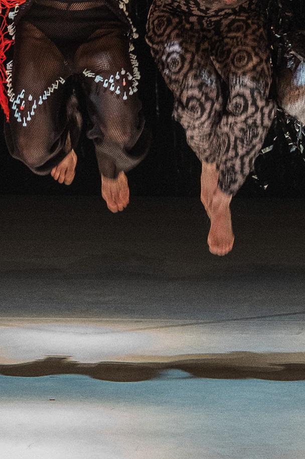 NL O Samba do Crioulo Doido is een stekende, frontale kritiek op de raciale stereotypen die geassocieerd worden met zwarte lichamen en die rondspoken in ons collectieve onderbewustzijn. Het stuk werd in 2004 gecreëerd door Luis de Abreu en 20 jaar later doorgegeven aan Calixto Neto. Het is een schalkse toe-eigening van een lichaam dat vaak als ondergeschikt wordt beschouwd, een uitnodiging om zichzelf en de eigen geschiedenis terug te claimen.