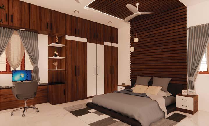Aim of the project is to create a dwelling for a family of four, where one of the parent is an ar�st. Designing an ar�st residence in an earthy, natural theme is inspired from Kerala architecture by clients.