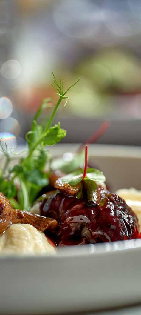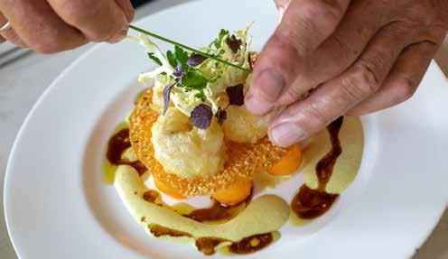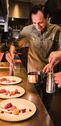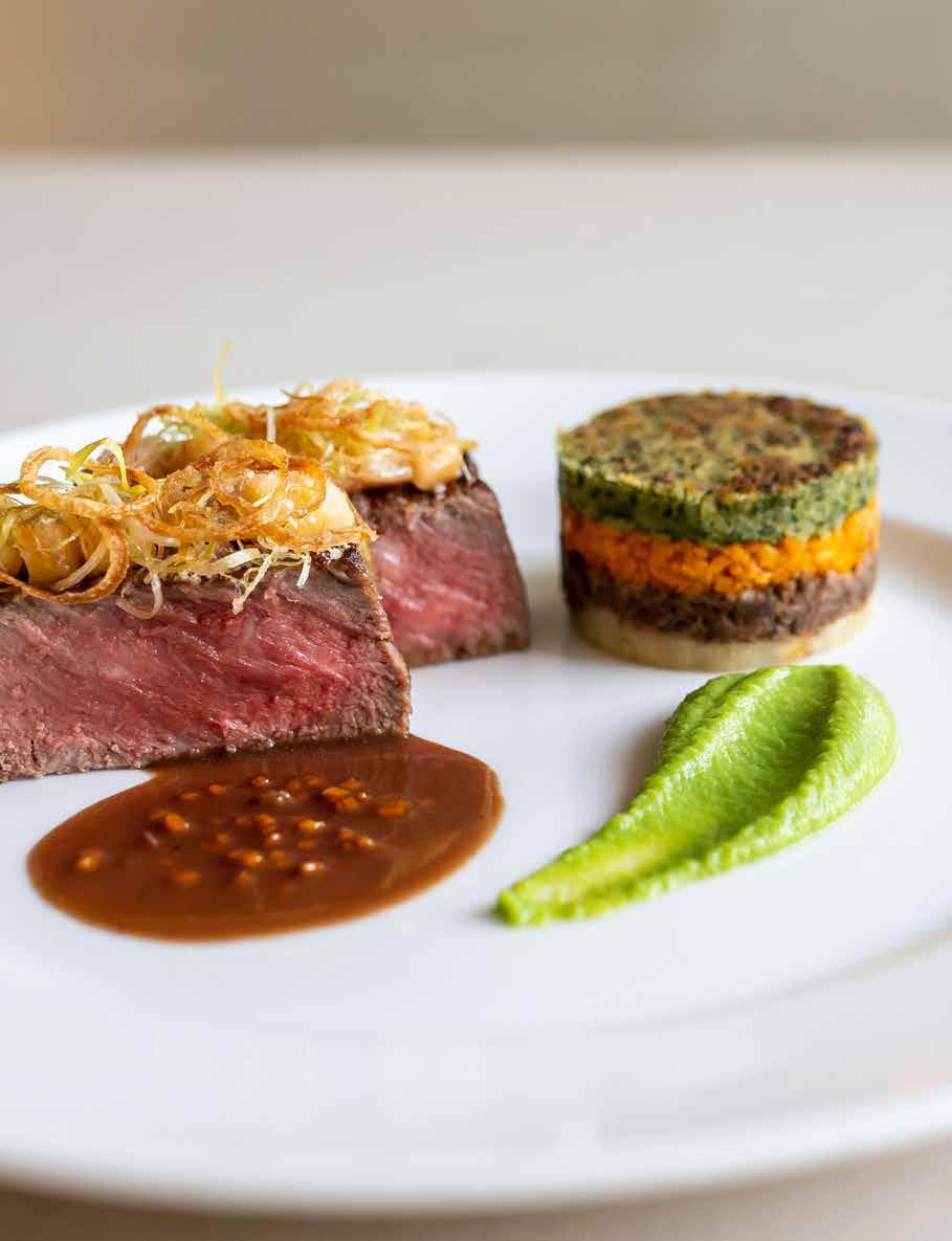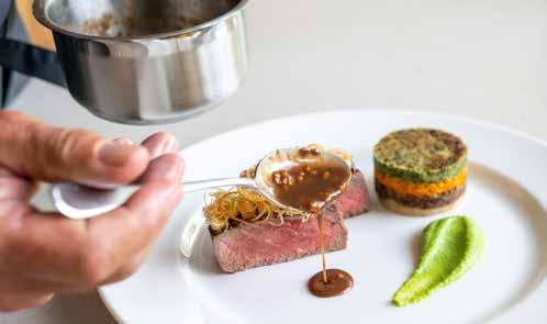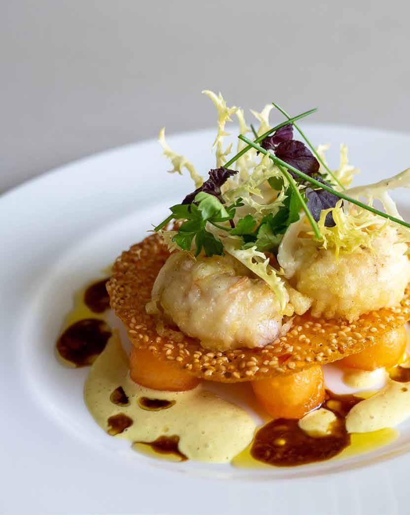 Gescheiden door een wand bevindt het restaurantgedeelte zich naast de bar waar je op de ruim tien meterlange comfortabele bank of de verhoogde zitjes geniet van de nieuwe kaart met mooie, verfijnde gerechtjes van alleen verse producten – zelfs het ijs wordt hier zelf bereid - terwijl je chefs Ivar Hendriks en Remco Ramp de scepter ziet zwaaien in de nieuwe, ruime open keuken. Op de kaart vind je klassiekers met een eigentijdse twist. De gemarineerde zalm met crème van Thaise curry en crunchy wasabi-nootjes en de entrecote met gerookte uienmayonaise, krokante uitjes en Amsterdamse uitjes zijn de hardlopers onder de starters. Zalig! Net als de gestoofde rundersucade met krokante zuurkool of de eendenborst met een saus van tonkabonen als hoofdgerecht. Fingerlicking good!
