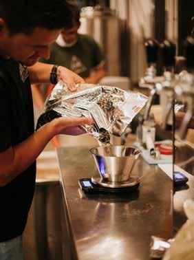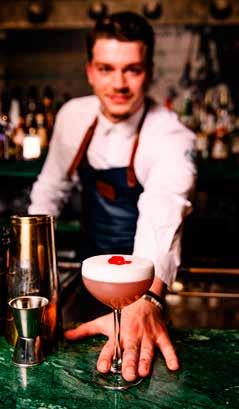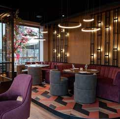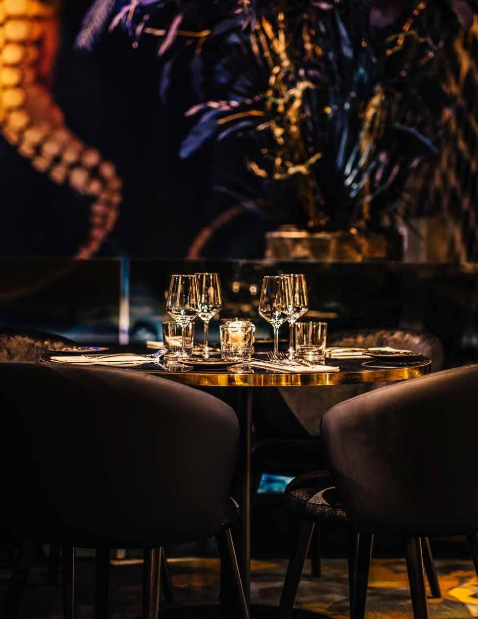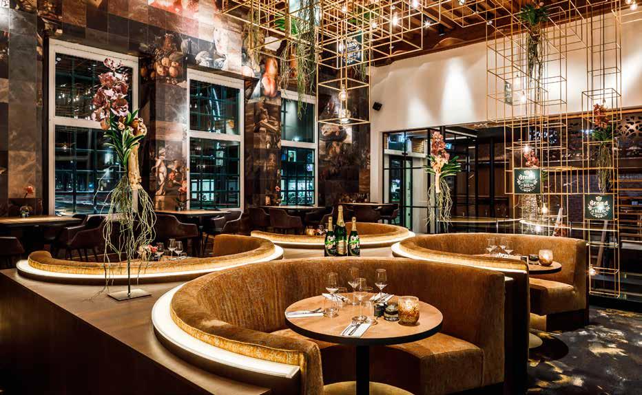 Een goede vibe met een warme sfeer en urbanchique uitstraling. De inrichting is voorzien van ruime ronde zitjes met oudroze banken en betongrijze luxe fauteuils en de bar in sfeervol notenhout met marmeren blad. Het restaurant is voorzien van een meterslange
