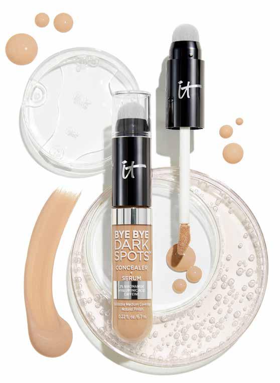 byeBYE BYE DARK SPOTS CONCEALER + SERUM Zeg maar “Bye Bye” tegen pigmentvlekjes, kringen onder je ogen en ruwe huidtextuurplekjes dankzij Bye Bye Dark Spots Concealer + Serum van IT Cosmetics. Deze medium dekkende concealer geeft na langdurig gebruik een zichtbare verbetering van een onopgemaakte huid en vermindert de zichtbaarheid van pigmentvlekjes, donkere oogkringen en biedt een 24-uurs hydratatie. € 29,95, exclusief verkrijgbaar bij ICI Paris XL.