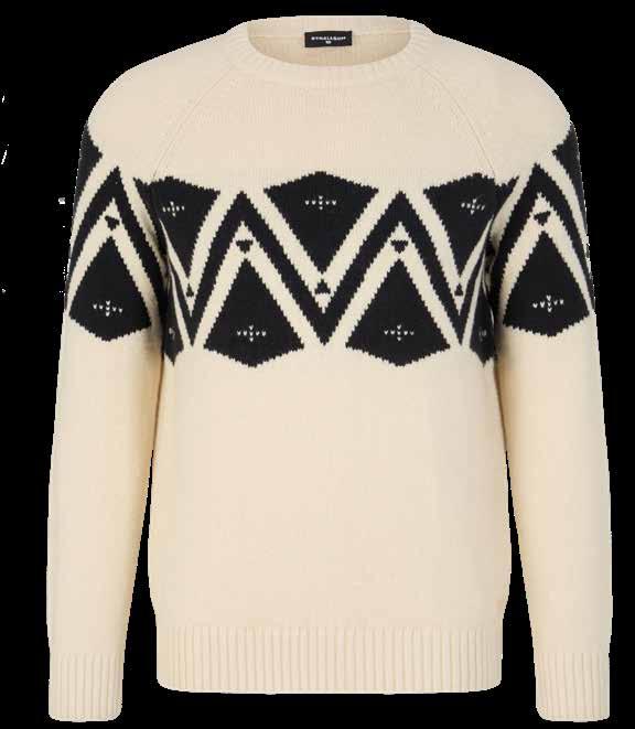 De trui Tito met een contrasterend dessin kenmerkt zich door de Noorse stijl. De geribde details, de raglanmouwen en de ronde hals ronden de look fraai af. Van een katoenmix met woltouch. Strellson trui € 159,95, Smit Mode.