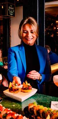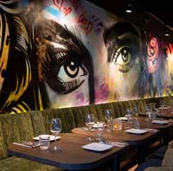 groen fluwelen bank en goudgroene stoeltjes met daarboven de absolute eyecatcher: een waanzinnige female friendly comic-art over de gehele wand. Overal in de zaak komen prachtige details terug in brons en goud dat in combinatie met de sfeervolle verlichting voor een uniek sfeertje zorgt. Helemaal Hip & Happening dus! Florizz Bar & Kitchen zou in een metropool niet misstaan, maar gelukkig kunnen wij gewoon gezellig aanschuiven aan het Veerplein 1 in Zwijndrecht.