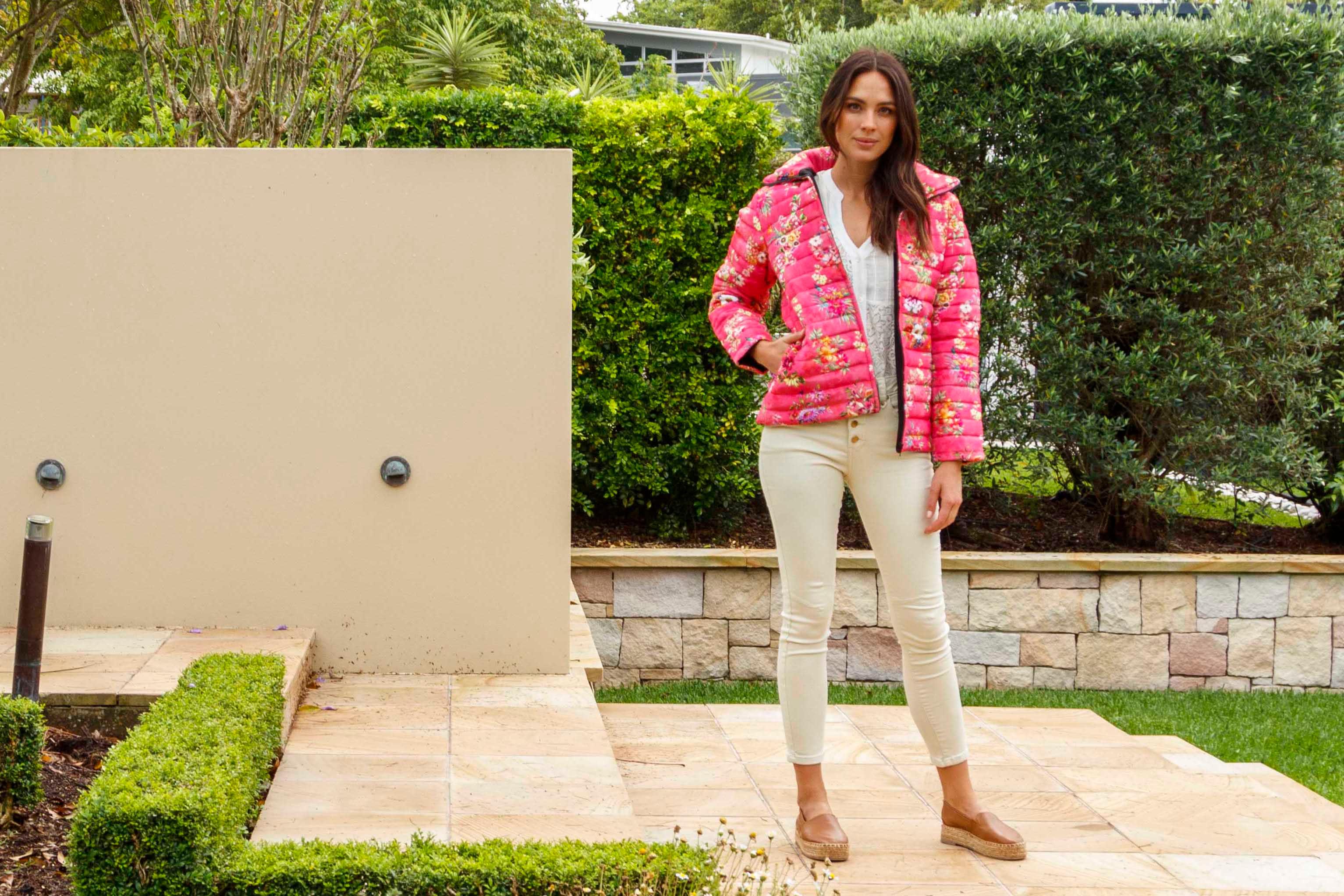 Taking any look to the next level, this cool and classic puffer jacket is featured in a tailored fit with printed fabrication and a full zip for added dimension. This effortlessly essential style is perfect to pair with anything from denim to a tailored trouser.