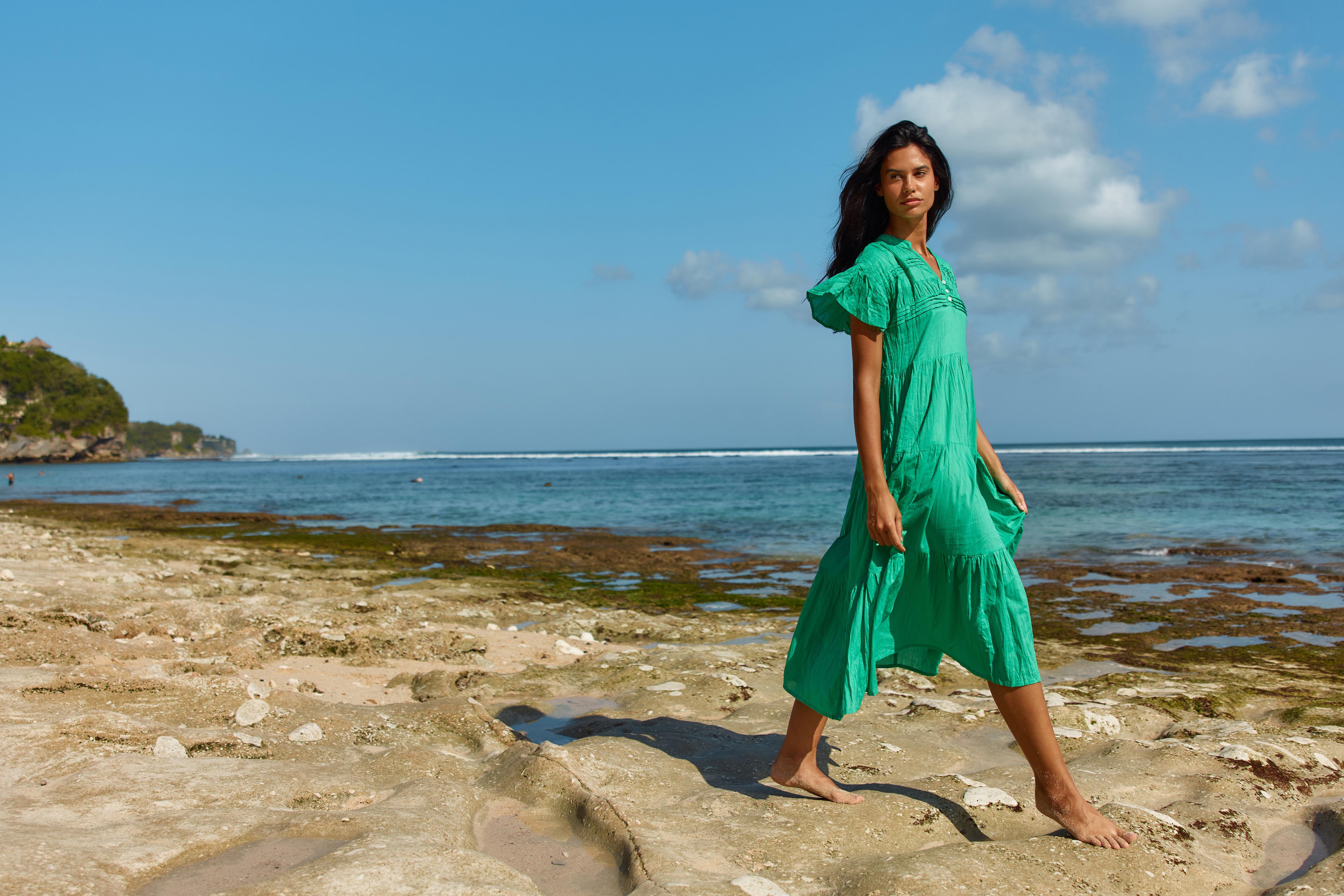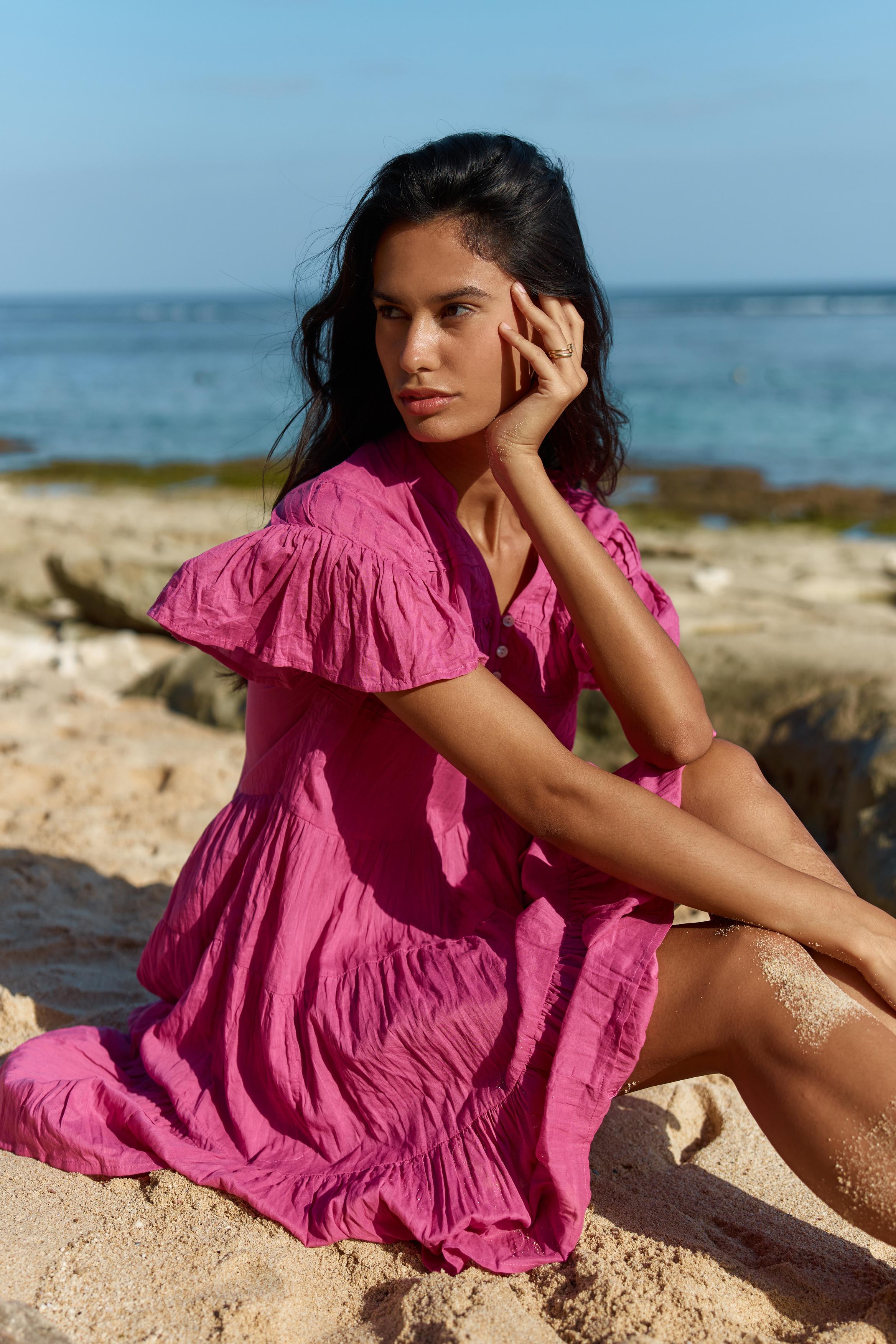 Discover effortless style with the Barsi dress Crafted with 100% lightweight cotton, this subtle and feminine pleated dress has a separate slip and subtle elastic opening at the ¾ sleeve for extra comfort Designed to hit just above the knee, this tiered dress will become your new go-to for an effortlessly chic look. Express yourself with the Barsi dress!