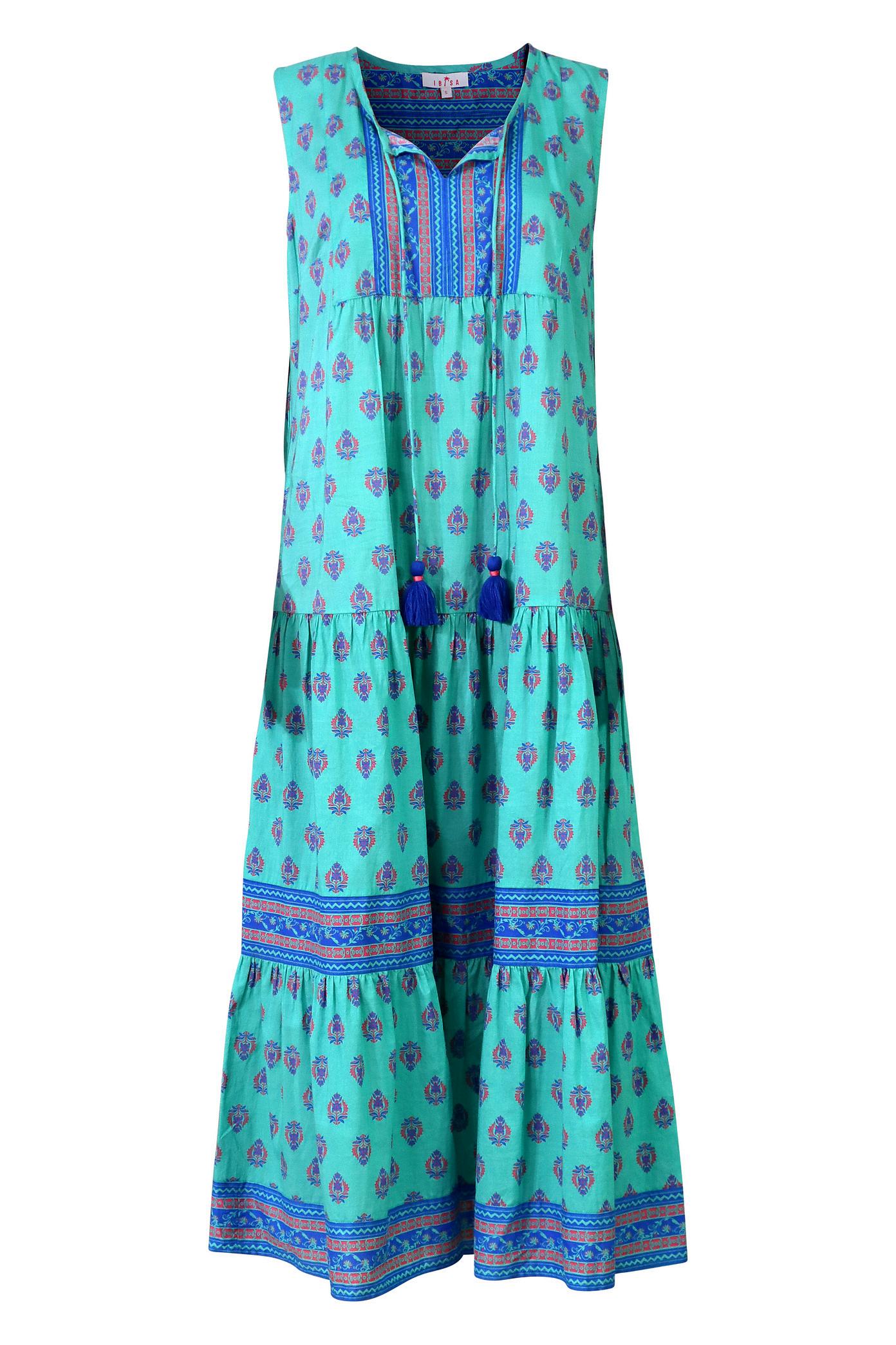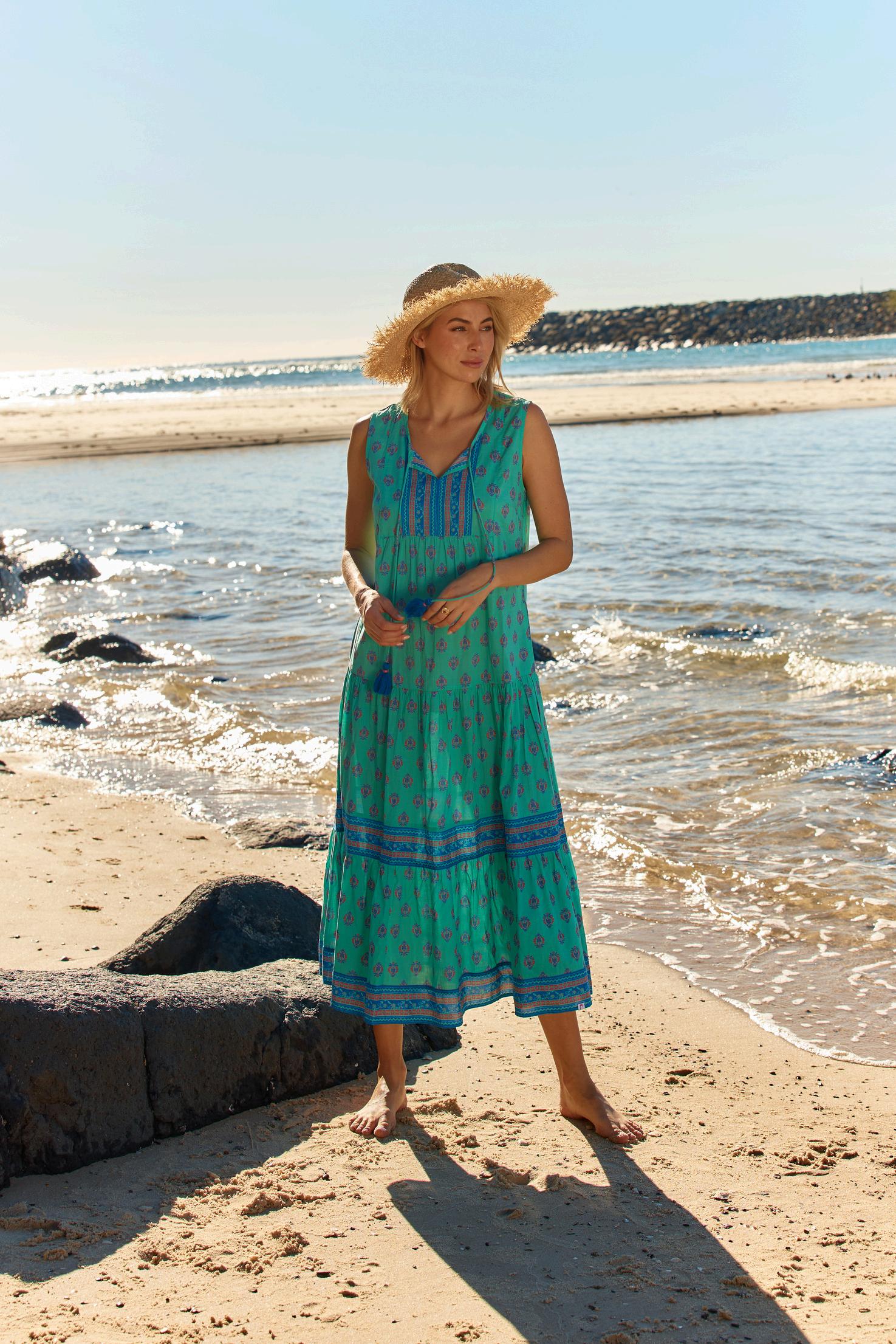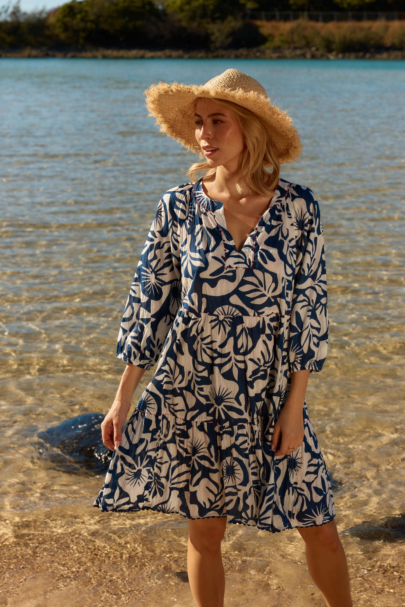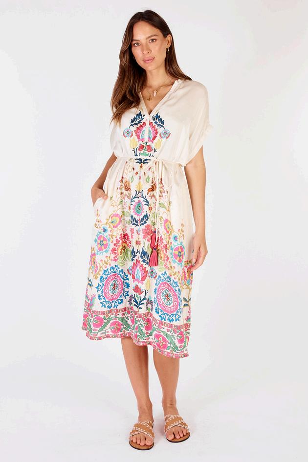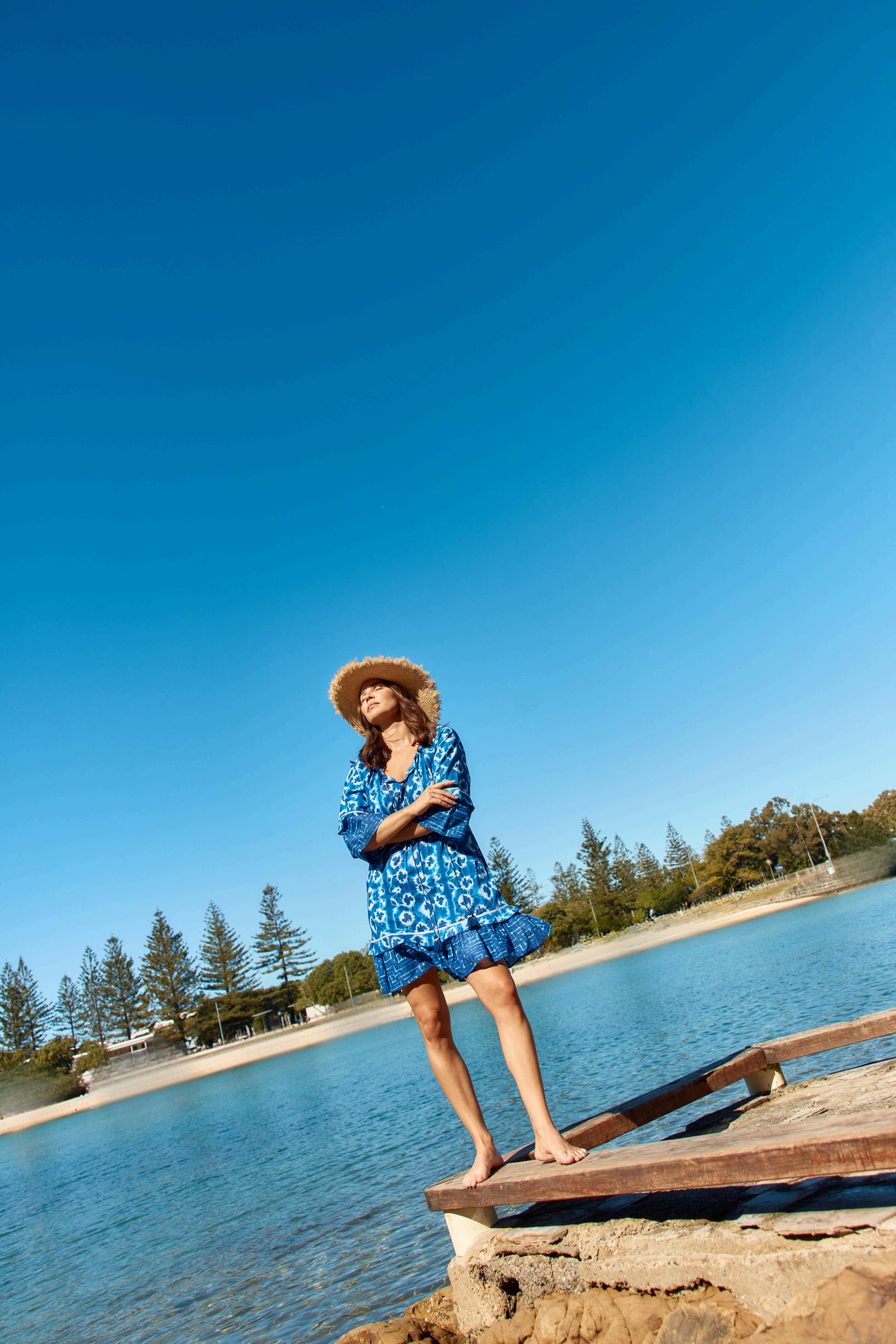 The Phoenix Button Dress is a vibrant homage to 70s Palm Springs Resort wear, capturing the era ’ s blend of bold colors, shapes and effortless glamour. The buttondown front, paired with its flowing silhouette, evokes a sense of laidback sophistication while offering an easy transition from daytime relaxation to evening cocktails. Making it quintessential piece for anyone channeling retro chic with a modern twist.
