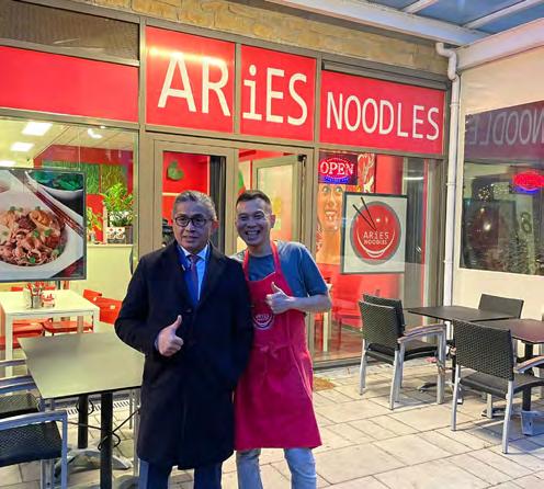 “Berhubung pelanggan Aries Noodles itu 90% orang Indonesia jadi menu andalan adalah menu bakmi kuah yang komplit (isinya ada ayam, babi, jamur, bakso dan pangsit). Karena rasanya yang mix enak campur semuanya,” kata Aries. “Dan kesannya, mereka suka bakminya dan kalau buat bule yang pernah ke Indonesia dan pernah coba, mereka bilang bakminya autentik seperti di Indonesia.“
