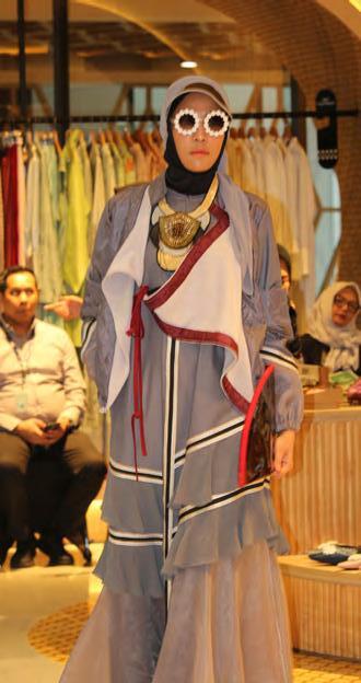 “Koleksi yang ditampilkan ada empat look yaitu modest ada yang gaun looknya seperti yang De Chantique tampilkan berupa gaun – gaun pesta, gaun – gaun yang bahannya lebih mewah lalu