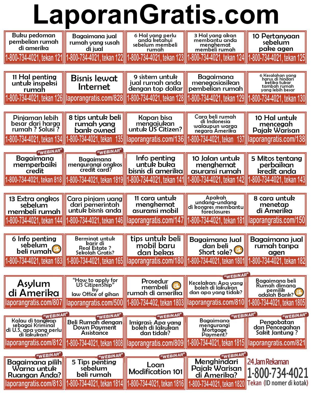 Untuk memperoleh Laporan Gratis ini, Silakan hubungi layanan 24 Jam Rekaman