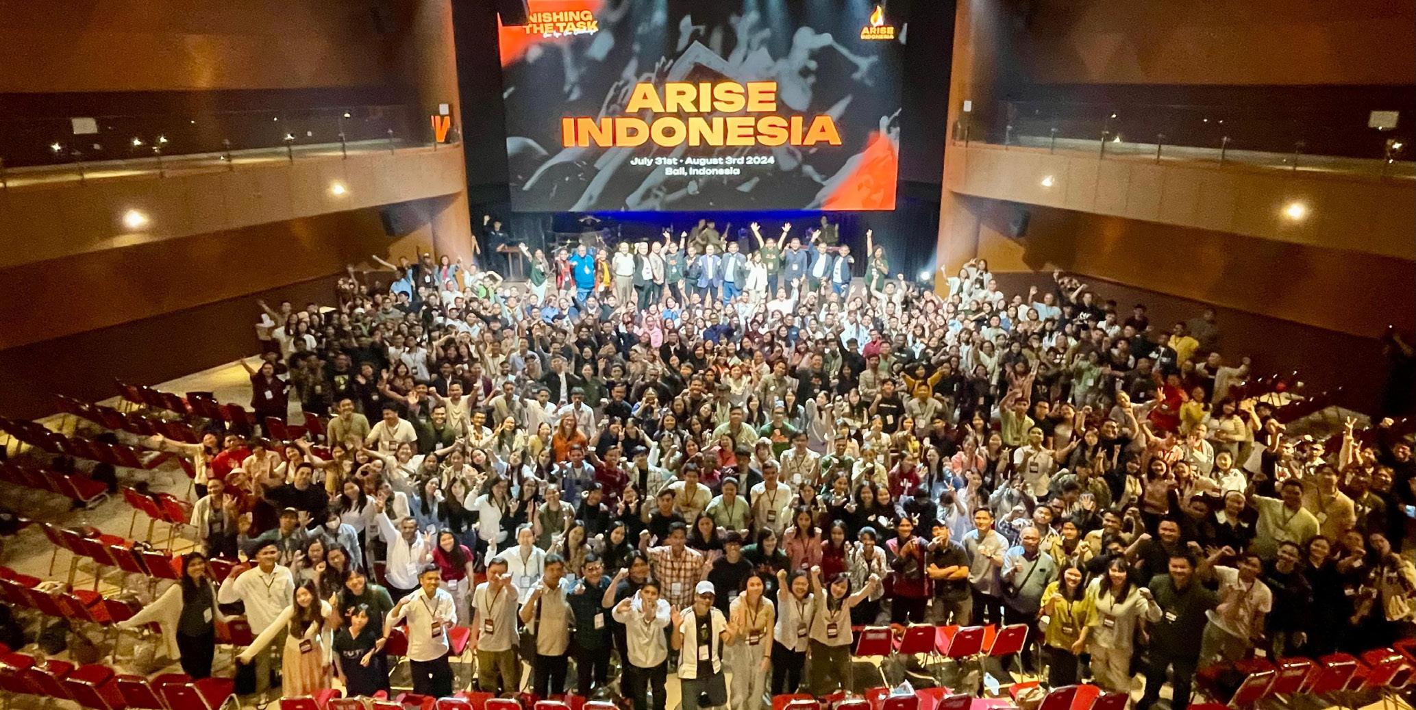 Konferensi Arise Indonesia 2024 yang merupakan tindak lanjut dari Arise Asia di Bangkok pada bulan Juli 2023 lalu menjadi momen penting dalam gerakan misi di Indonesia. Tema yang diangkat adalah “FINISHING THE TASK”. Acara ini berlangsung dari 31 Juli sampai 3 Agustus 2024, di Nusa Pujian Convention Center, Bali, dan dihadiri 1.000 orang yang menjadi peserta, panitia bahkan volunteer dari seluruh Indonesia serta perwakilan dari negara-negara di luar Indonesia.