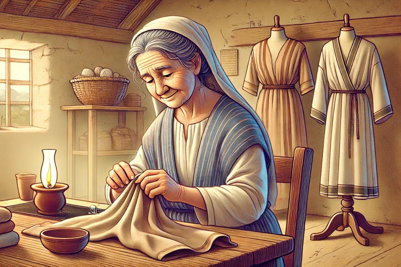 Dikisahkan bahwa Dorkas memiliki kemampuan untuk menjahit pakaian. Tidak diceritakan apakah menjahit adalah pekerjaan utamanya, tetapi Dorkas menggunakan talentanya untuk membantu orang lain. Dorkas menjahit baju untuk para janda yang membutuhkan. Dorkas menggunakan talentanya tidak hanya untuk dirinya sendiri, tetapi dia dengan rela membantu orang lain. Pada zaman dahulu, belum ada mesin jahit seperti sekarang. Menjahit hanya menggunakan tangan, benang dan jarum saja. Tentu hal ini membutuhkan waktu dan tenaga yang lebih untuk bisa menyelesaikan satu baju. Dorkas tidak hanya menjahit baju untuk seorang janda saja tetapi beberapa orang. Ayat 39: “Semua janda datang berdiri dekatnya dan sambil menangis….” Hal ini menunjukkan bahwa Dorkas pernah menjahit baju untuk mereka dan ia tidak meminta bayaran, tetapi memberikannya secara gratis.
