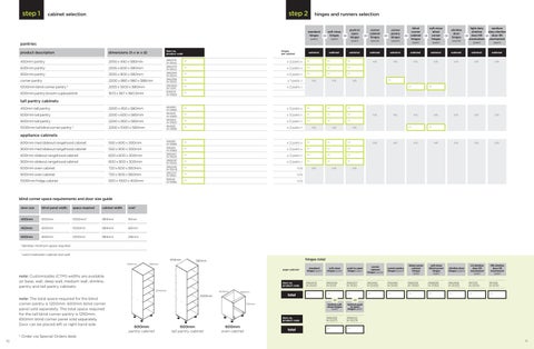 note: Customisable (CTM) widths are available on base, wall, deep wall, medium wall, slimline, pantry and tall pantry cabinets.