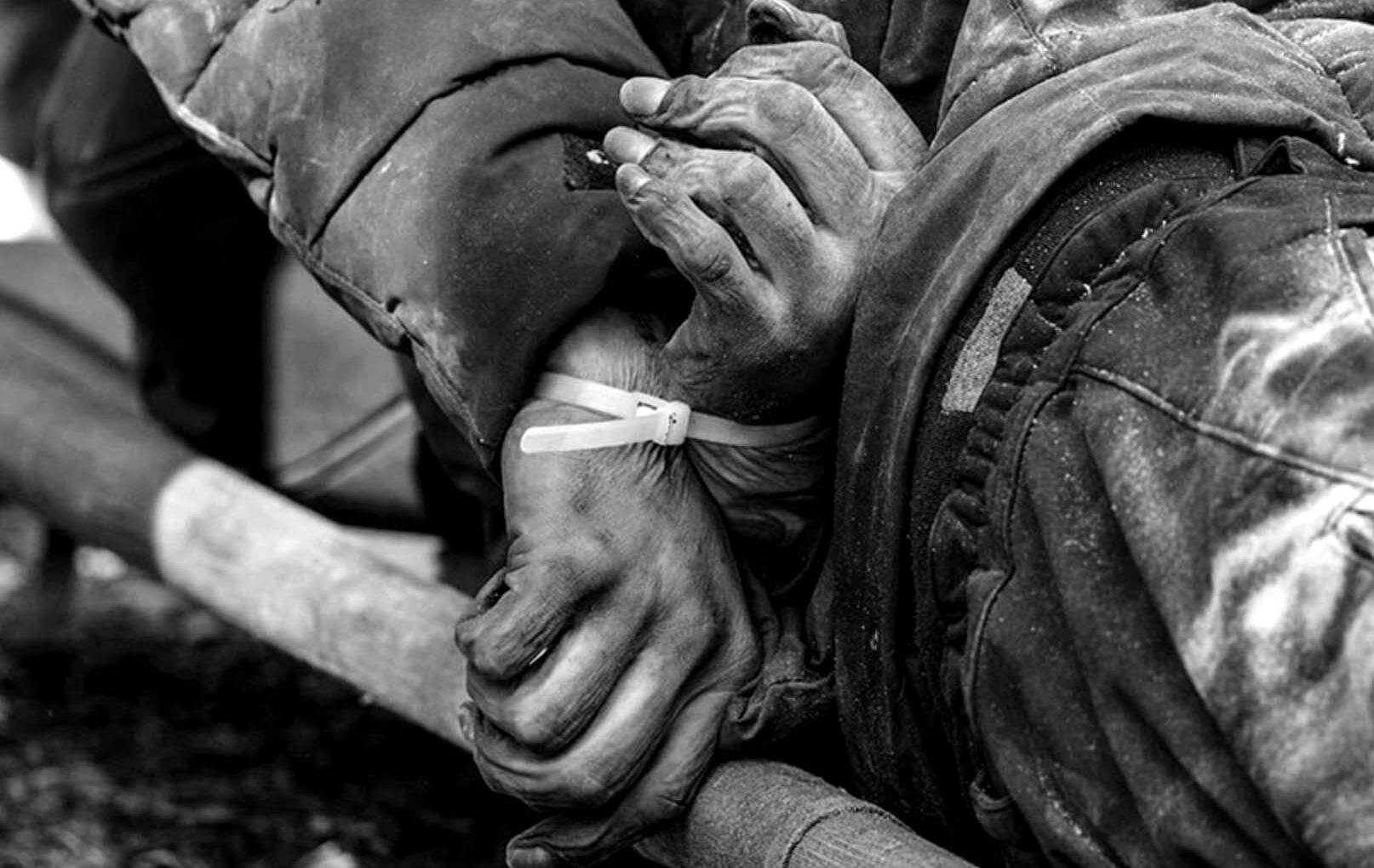 After Taras Shapravskyi visited the crime scene that the Russian Troops left behind at a summer camp, there were "Signs of torture" on the bodies of the victims. Five men were dead, they wore civilian clothes and were found in the chamber, they had burns, bruises and lacerations. Two trails of dried-up blood ran down a wall as it fell into the dirt, there was a fleece hat that appeared to have a bullet hole in it.