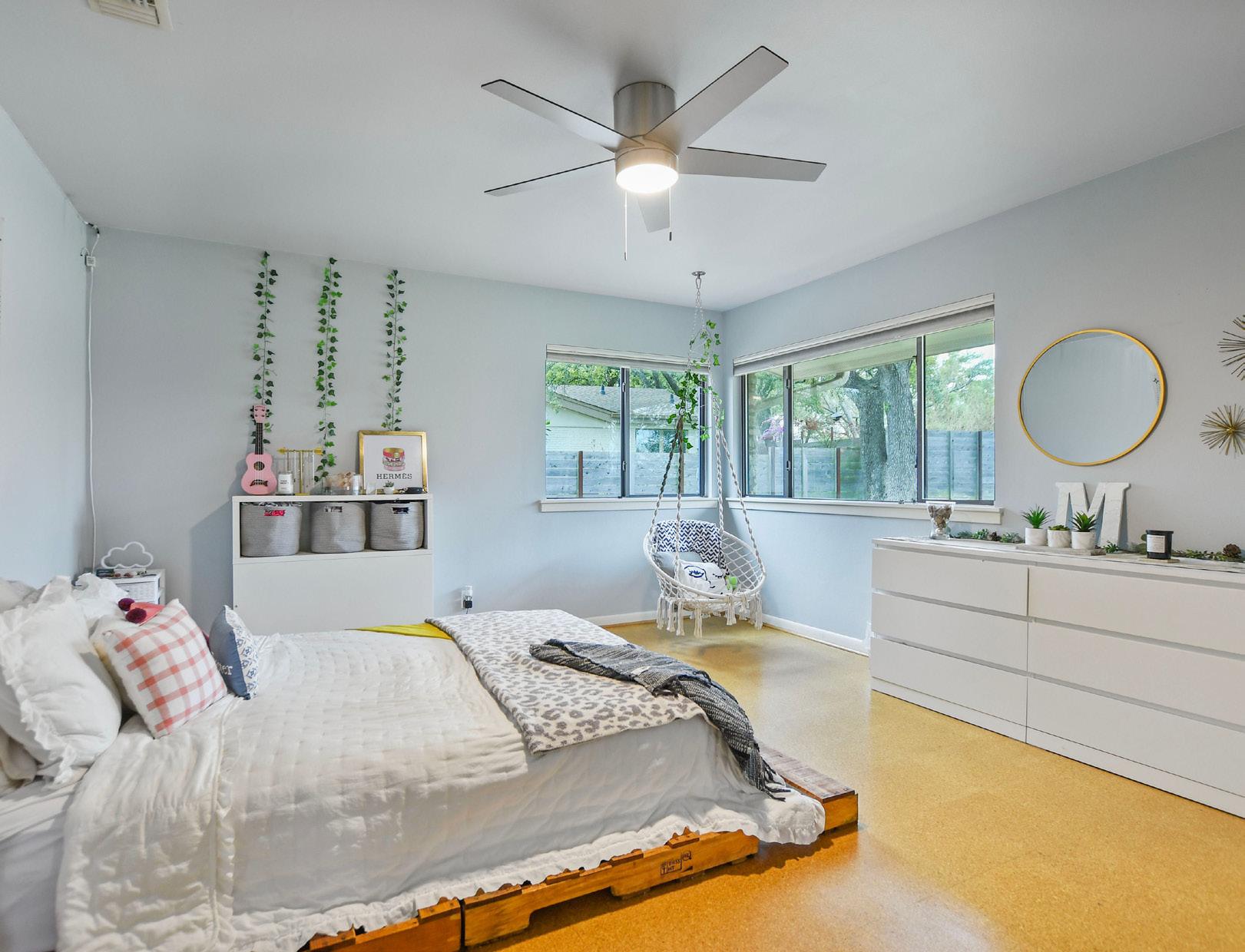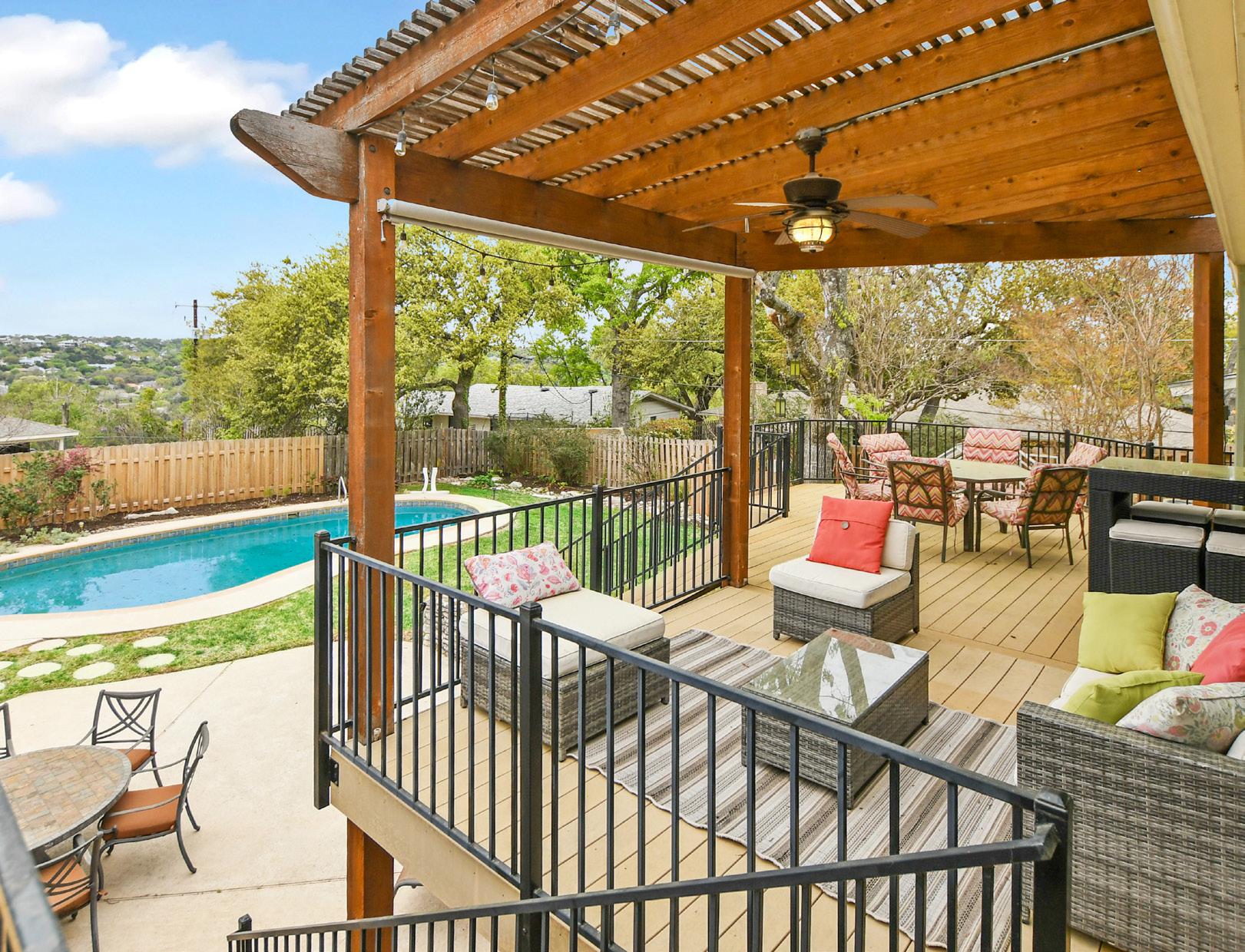 Within 10 minutes of Downtown and the Domain, this mid-century modern five bedroom, four bathroom home in Highland Park West is ready for it’s new adventure. Lovingly cared for with professionally-designed updates, this 4,517 square foot home has generously-sized bedrooms and living areas with views off the back deck. Downstairs in the walk-out basement, you will find an additional bedroom, bathroom, and game room complete with bookshelves, a pool table, and lots of space with sliding doors to the patio and backyard. On a half acre lot, there is lots of space to enjoy.