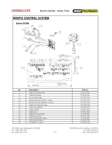 Cable for power pack Cable for power Cover with hinge Sensor B13 for lift arm - 3 wire Sensor B16 for platform - 4 wire Cable for solenoid valve Cable for platform Cable VDHH Cable no.9 Cable for control box Clamp for cover Foot control with 2 wire Foot control button PC-Board - K plus