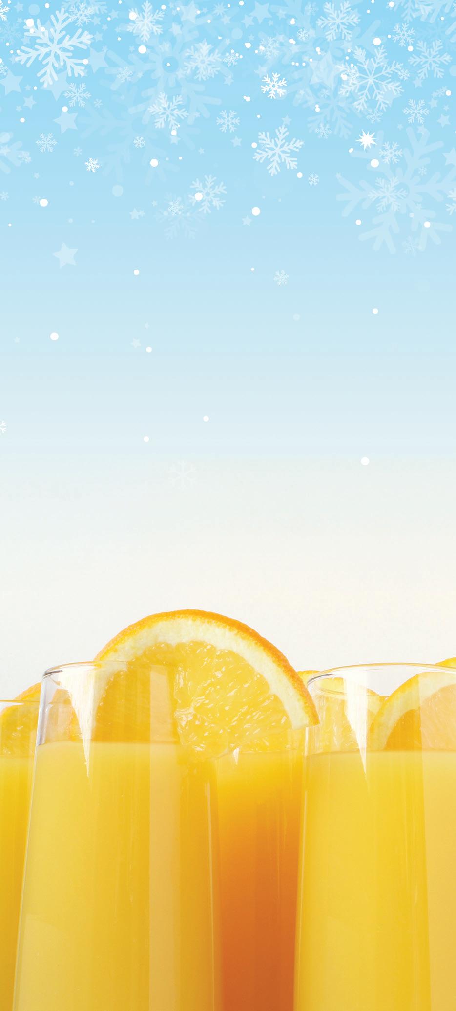 Champagne Mimosas Egg Nog Lemonade Hot Spiced Cider Iced Tea, Coffee, and Hot Tea