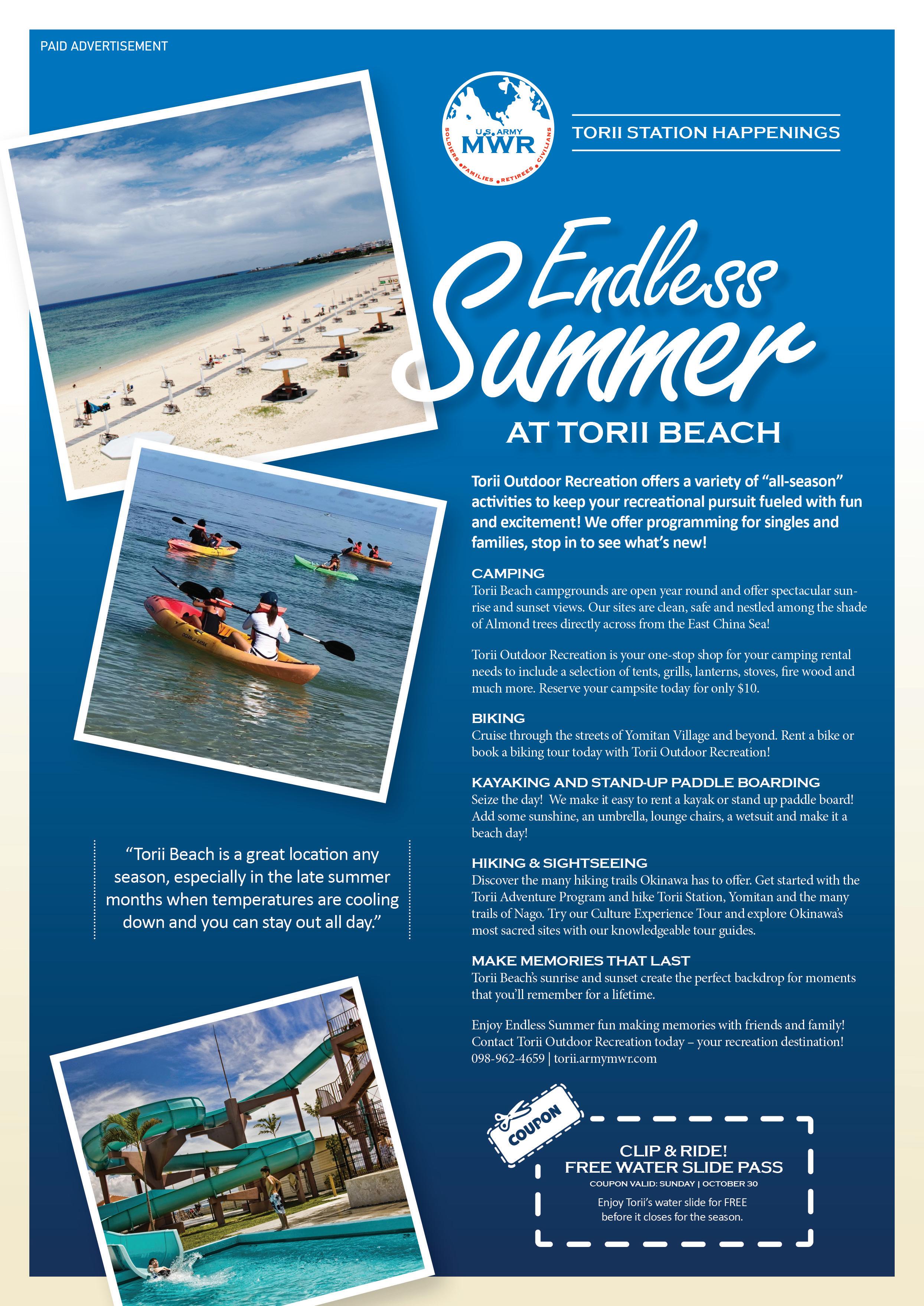 - 2 pm |Hanabi’s Roczam |E Club Bingo Appreciation 7 pm |Emery Lanes Lunch & Bowl |Emery Lanes Single Airman Free Bowling |Shogun Auto Care $20 Off AC Full Service |E Club Kazoku Place BBQ Rib Night Special |E Club Soap Opera Night Bingo, $500 Night Bingo 7 pm |Emery Lanes Lunch & Bowl |Emery Lanes Anytime League |E Club Kazoku Place Members Only Two for One Special: 4 - 9 pm |Emery Lanes Kids Eat Free Tuesdays: 5 - 8:30 pm |Hanabi’s Smartphone Trivia: 7 - 9 pm |Emery Lanes Lunch & Bowl |Emery Lanes Anytime League |Emery Lanes Wing Wednesday: All day |E Club Mongolian BBQ Night: 5 - 8 pm |O Club Family Membership Night 5:30 - 7 pm |Emery Lanes Lunch & Bowl |Emery Lanes Anytime League |E Club Drive-By Dinners |E Club Family Membership Night Halloween Party 5 - 7 pm |Rocker Lounge Last Friday Super Social Hour 5 - 7 pm |Teen Center Spooktacular Glow Run: 7 - 9 pm |Youth Center Monster Bash 7 - 9 pm |O CLUB WICKED WEEKENDER COSTUME PARTY: 7 pm - 2 am |ODR Stand-Up Paddleboard |MARINA UNDERWATER PUMPKIN CARVING: 2 - 5 pm |SCHILLING SPOOKY TOWN 3 - 7 pm |O CLUB THRILLER KARAOKE 7 pm - 2 am |OKUMA HAUNTED VILLAGE |E Club Halloween Spooky Party (adults only): 10 pm 30 31 |E Club Kazoku Place Little Rocker Halloween Meal Special: 4 - 9 pm |Shogun Auto Care Half Price Stall Fees HOT EVENTS FOOD FAMILY LIFE & LEISURE SPORTS & RECREATION RESOURCES
