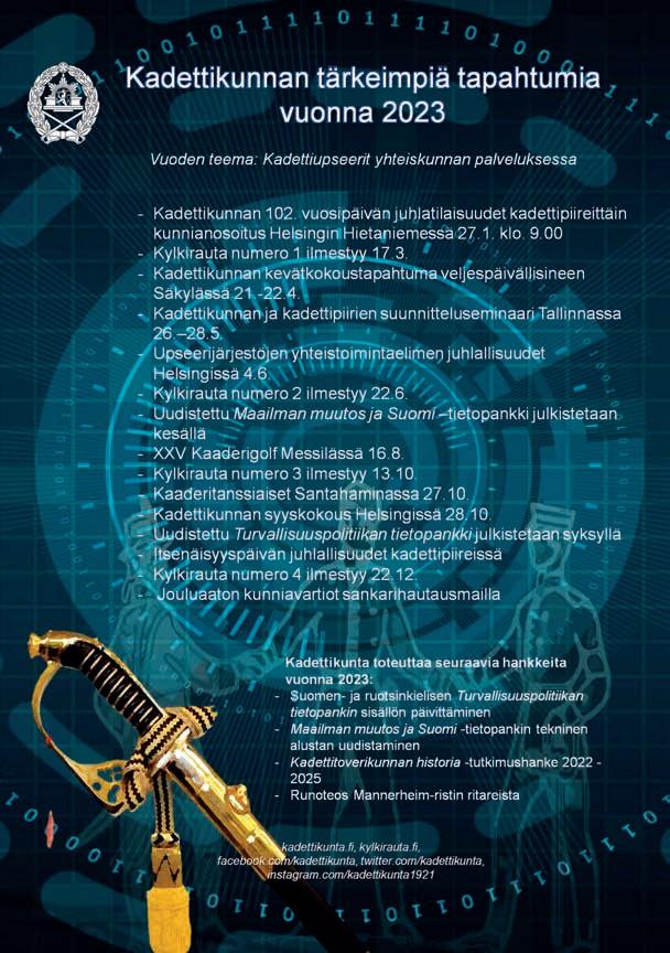 Tilaukset, osoitteenmuutokset ja laskutus Sabina Krogars, puh. 050 470 7291 sabina.krogars(at)kadettikunta.fi
