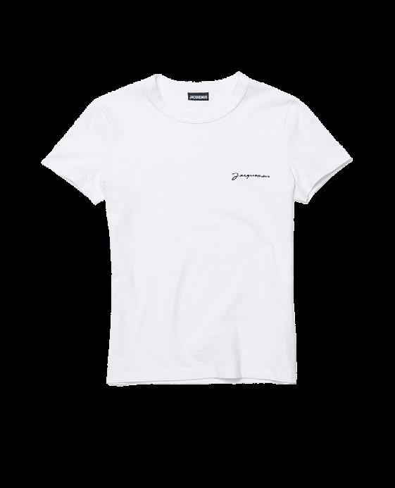 Ein weiterer Trend ist die Wiederkehr von Klassikern wie dem weißen Tank Top oder T-Shirt. Als Basic gehört es in jede Garderobe, nichts lässt sich unkomplizierter kombinieren. Ich liebe dieses Modell von Jacquemus mit Logo-Schriftzug.