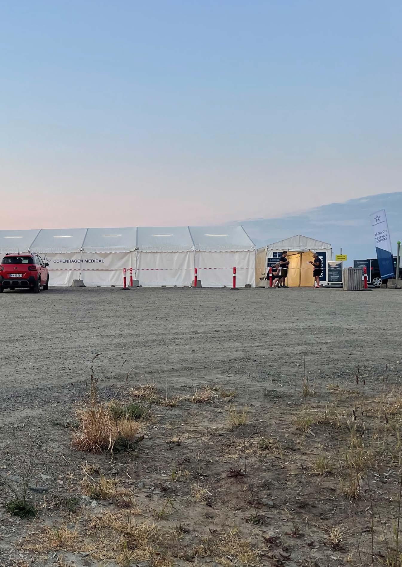 Reorganisering af distribution: Under coronapandemien oplevede borgere ulige adgang til basale ydelser, herunder adgang til test og sundhedspleje. Foto af Copenhagen Medical Test-telte, Allinge, Natalie Mossin.