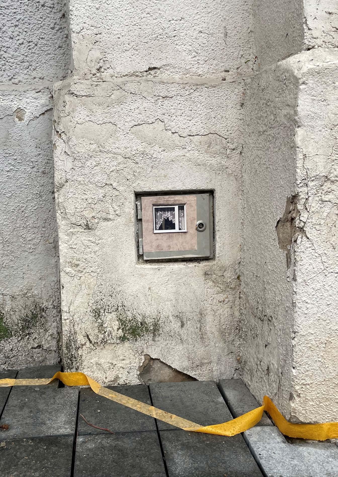 Restriktionerne i forbindelse med COVID-19 viste sig blandt andet med skiltning. Skiltningen skulle vise, hvordan man kollektivt skulle opføre sig i det offentlige rum. På denne måde skulle skiltningen både eksemplificere opførelsen, samtidigt med at den skulle informere besøgende. Foto: Dorthe Chakravarty.