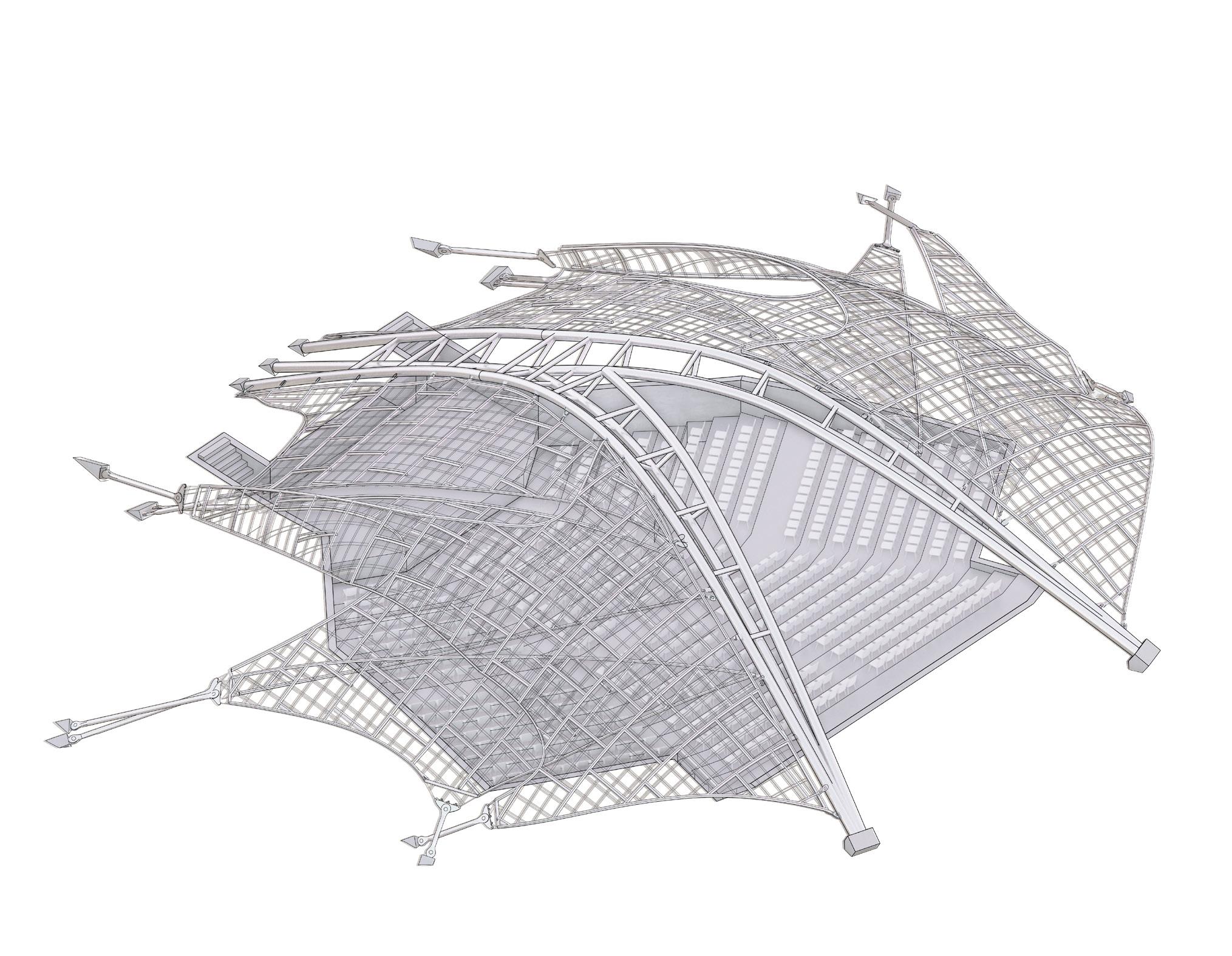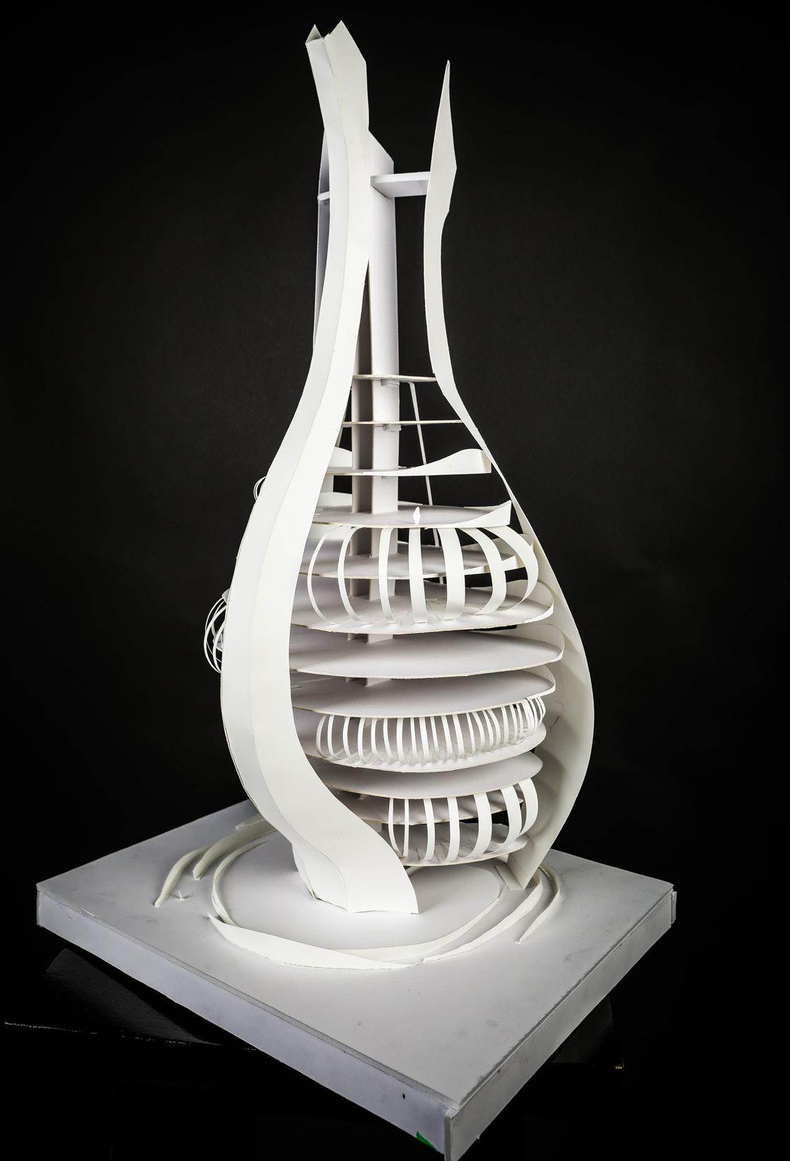 human respiratory system and the protective structure of the rib cage. By incorporating elements of human uncertainty and isolation. Given that COVID-19 is a respiratory illness, the building features design elements
