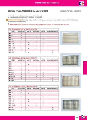 • Τοποθέτηση απ’ ευθείας σε τοίχο, αεραγωγό ή ψευδοροφή. • Κατάλληλα για κλιματισμό (ψύξη – θέρμανση) και εξαερισμό. ÊÁÔÏÐÉÍ ÁÐÁÉÔÇÓÅÙÓ: Τα επίτοιχα στόμια διατίθενται σε διάφορους τύπους και κατασκευάζονται σε οποιεσδήποτε διαστάσεις. Äõíáôüôçôá åðéëïãÞò ÷ñþìáôïò.