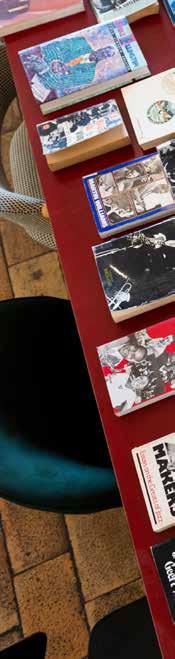 Kaffee Damast ademt jazz en zelfs op rustigere momenten, als we even de tijd hebben om er een boek bij te nemen, is muziek nooit veraf. Onze boekentafel barst dan ook van de boeiende verhalen.
