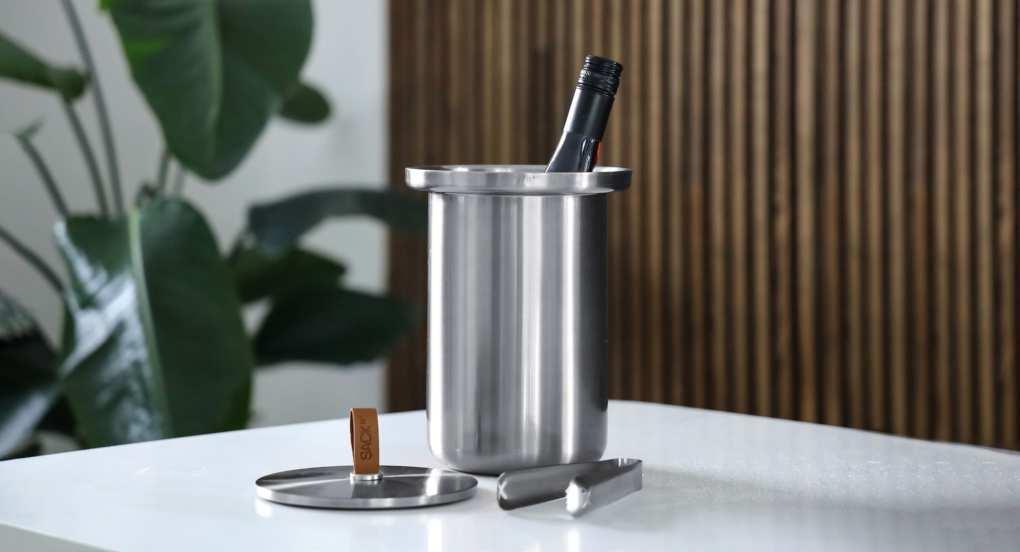 With SACKit Wine Bucket and accessories it becomes easy and convenient to keep your drinks cool for hours. The Wine Bucket is made with simple design, sa}n polished stainless steel, and geometric shapes that creates an elegant wine cooler and ice bucket that can be used both inside and outside. The set consists of wine bucket, lid, ice spoon, hook and grill.
