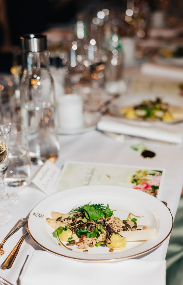 Kort därpå blev vi serverade förrätten: Variation på sparris, örtsallad, rökt tofu, citron- & dillemulsion.