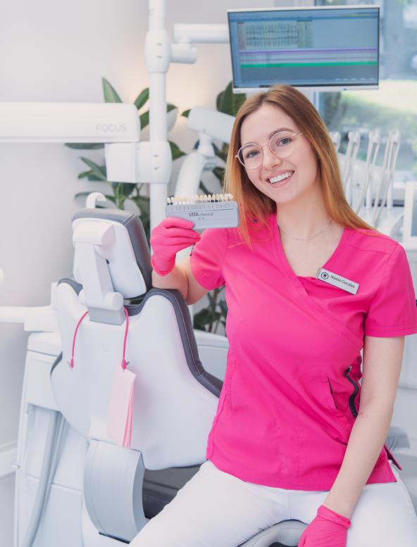 Jag heter Anastasia Ciocalau och är 28 år gammal. Jag är färdigutbildad tandläkare från Ukraina. Sedan barndomen har jag drömt om att bli tandläkare, och jag har aldrig kunnat föreställa mig ett annat yrke.