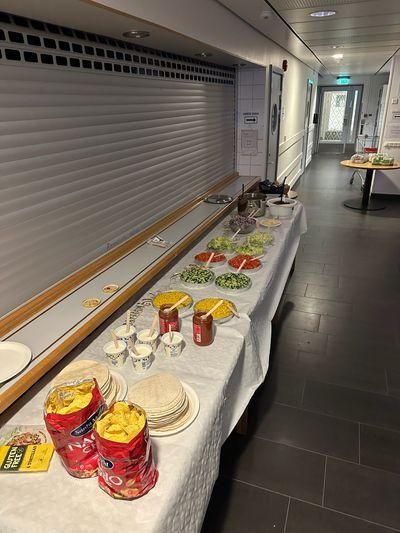 Däre3er sererades middagen, som bestod a en hemlagad tacob}%é. B}%én innehöll ett brett }ral a tillbehör såsom majs, g}rka, rödlök, tomat, sallad, ost, tortillabröd och nachochips. Gl}tenfria alternati fanns också tillgängliga. När middagen asl}tats ar det dags för spe, där nollorna framförde tå olika bidrag till arsin låt. En gr}pp alde Pop}lar a Eric Saade, medan den andra speade till Ama¦ing a