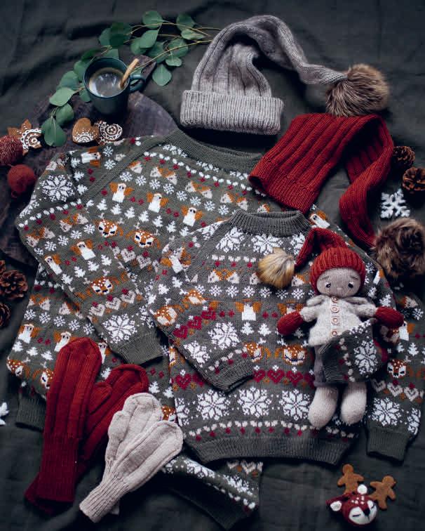Boken vår inneholder tips til juleverksted, til baking, julepynt og pynting av bord i tillegg til oppskrifter på fine plagg til hele familien. Plagg både til en tur ut i snøen og til julefeiringen. Vi har oppskrifter i flere vanskelighetsgrader, og størrelsene går fra prematur til herre. Har du ikke strik ket så mye før, kan du prøve deg på julepynten vår. Før du vet ordet av det, har du laget flere julekuler på én kveld. Kulene er også fine som gaver til noen du er glad i.