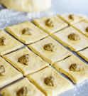 Lag fyll. Bruk en stavmikser til å hakke pistasjnøttene. Bland i brunt sukker og vaniljekrem.