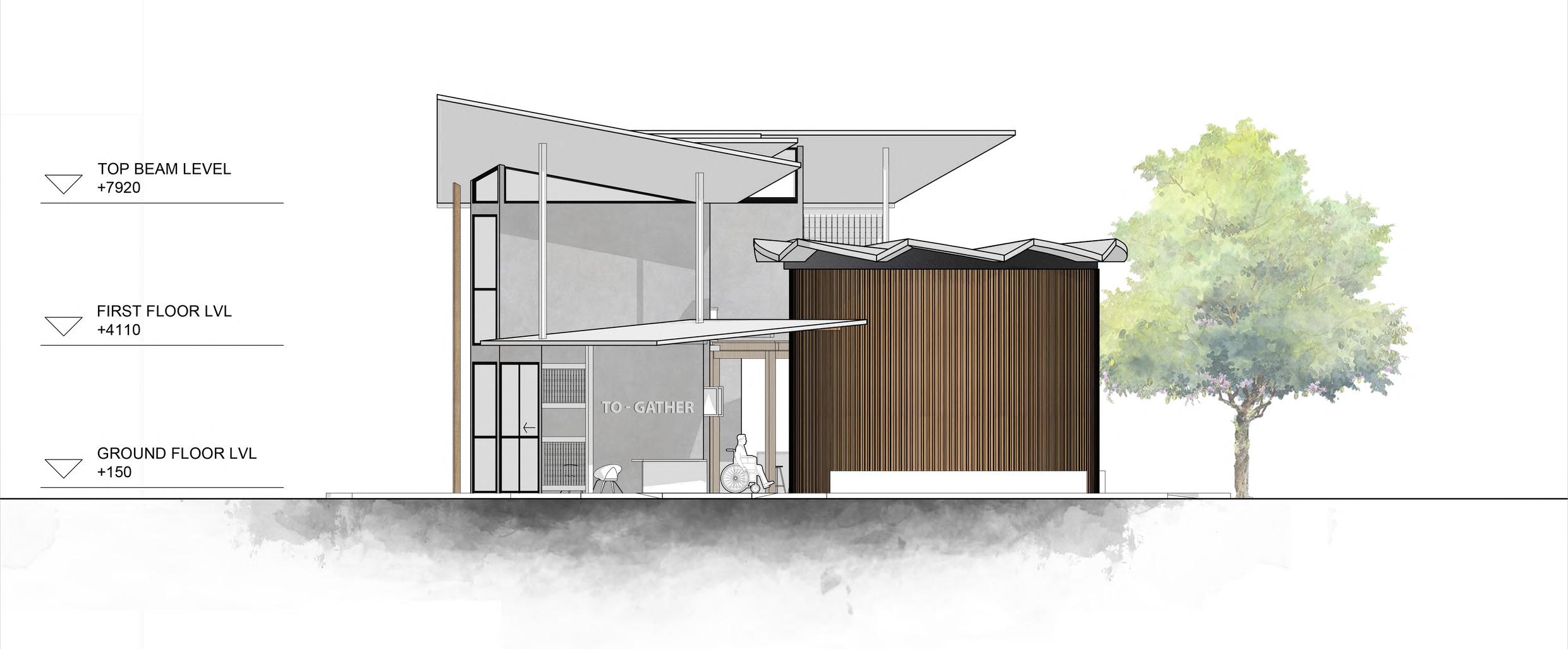 TO-GATHER is a community center located at Medan Tuanku and it aims to brings people from different backgrounds together through education & socializing. The community center focuses on providing education to the homeless & people around the site by having a fabrication space, multipurpose hall, computer room & open pantry.