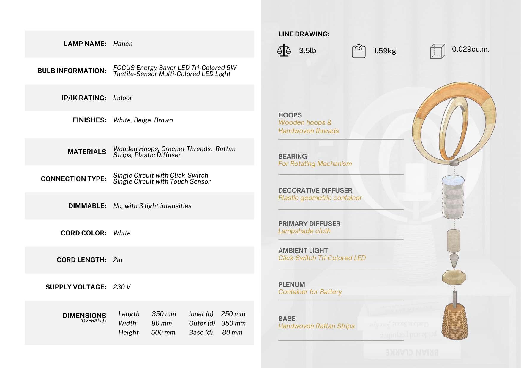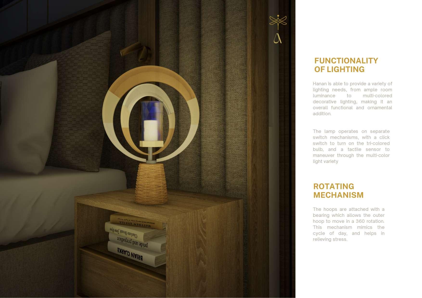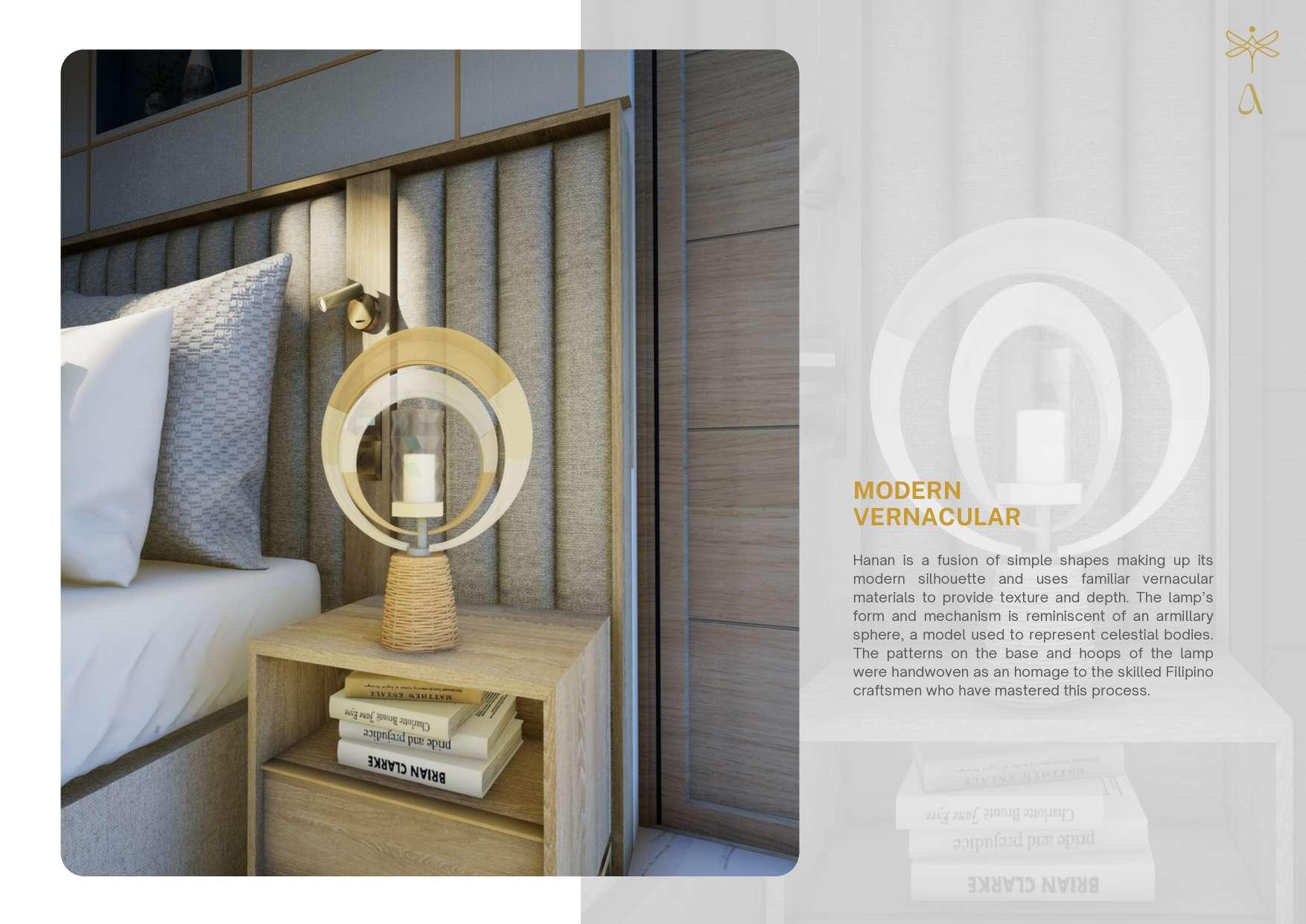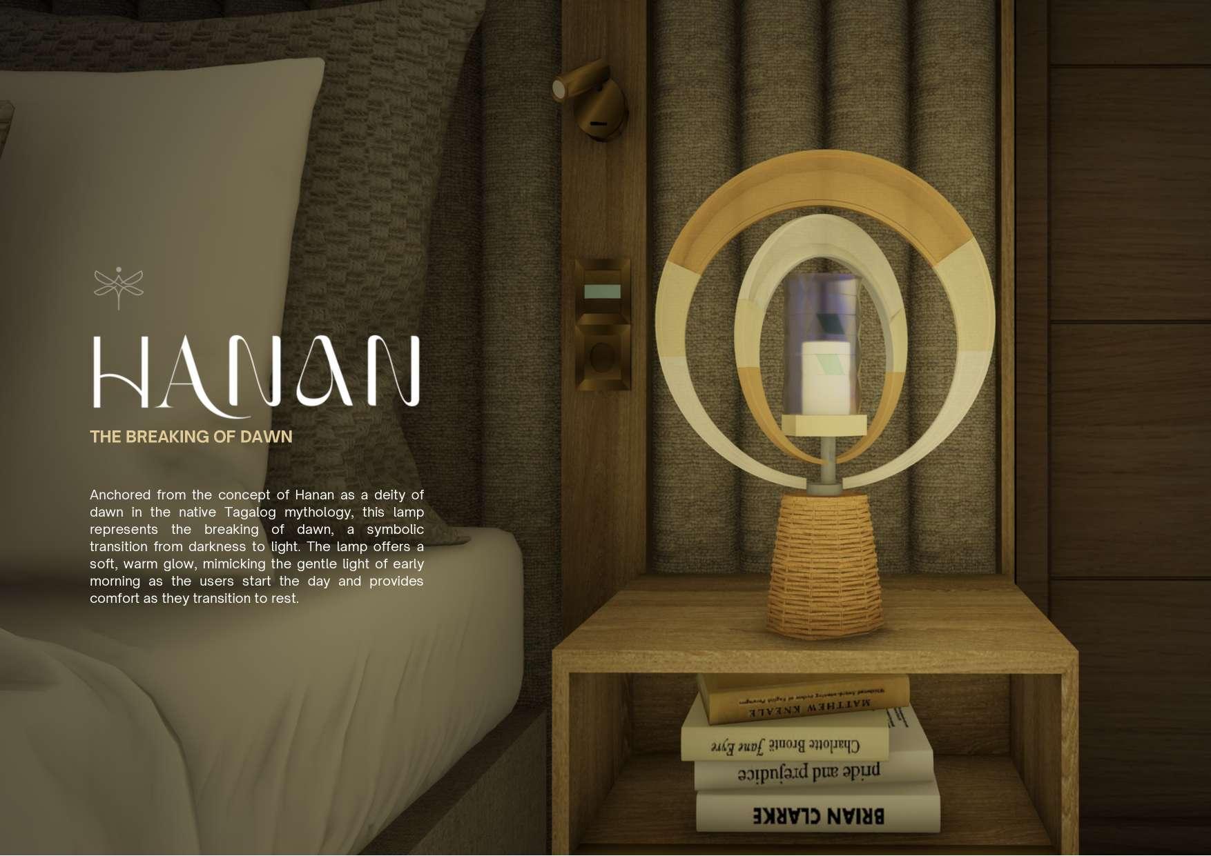 Anchored from the concept of Hanan as a deity of dawn in the native Tagalog mythology, this lamp represents the breaking of dawn, a symbolic transition from darkness to light. The lamp offers a soft, warm glow, mimicking the gentle light of early morning as the users start the day and provides comfort as they transition to rest.