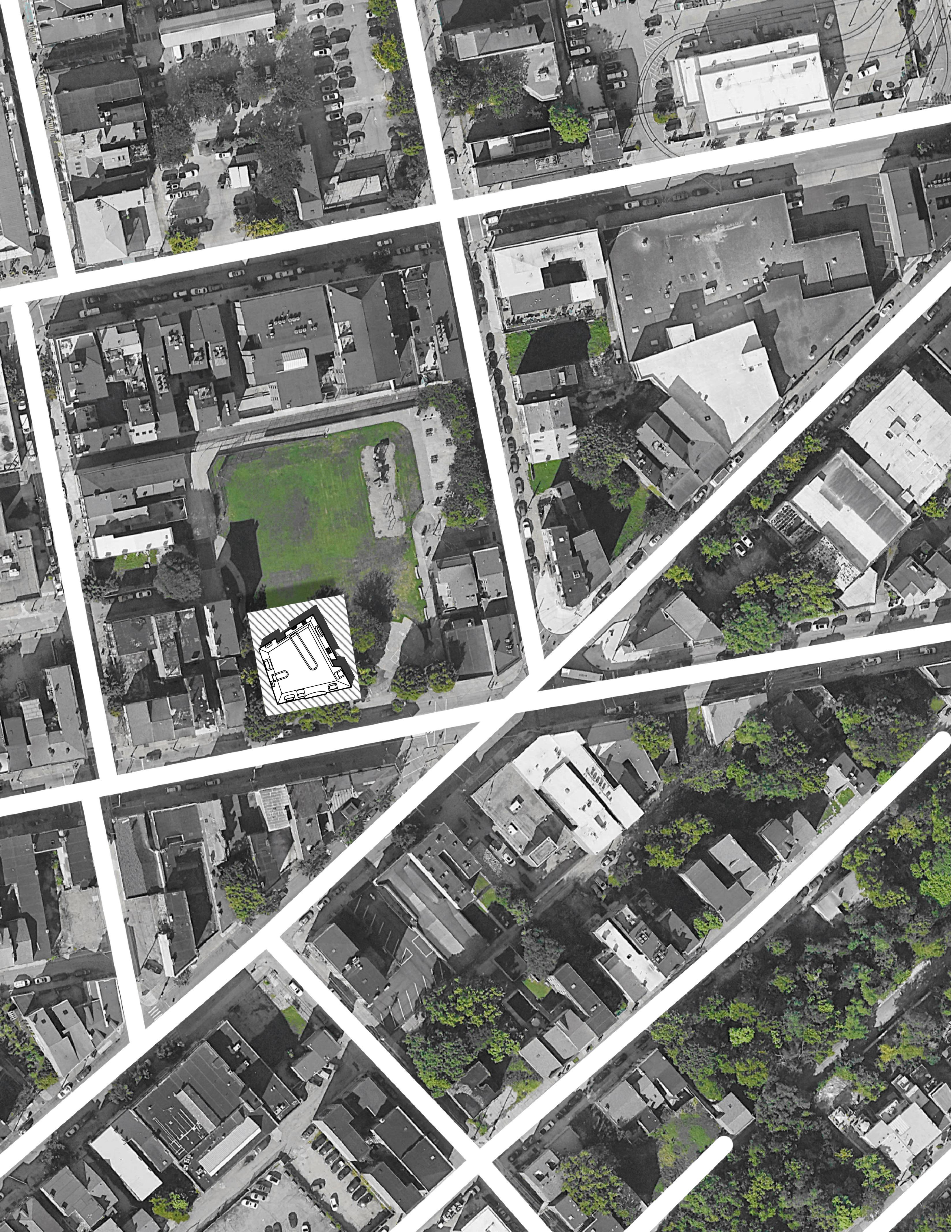 Serving as a community art center, the project reinforces the surrounding site by incorporating elements from the numerous abandoned 19th century Italianated apartments in the city of Cincinnati. The elements such as the bay window, arch, and column get rescaled, transformed, abstracted, and then applied to a contemporary massing which also origintaes from a traditional Italianated apartment block.