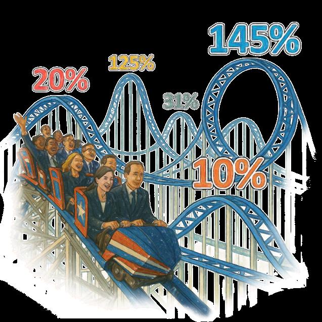 Höchst unwahrscheinlich ist es hingegen, dass der durchschnittliche US-Zollsatz unter Präsident Trump wieder in den einstelligen Prozentbereich zurückkehren wird. Realistischerweise wird das Handelschaos nur dann ein Ende haben, wenn der Kongress Trump die Kontrolle über die Handelspolitik entreisst. Dazu müssten genügend Republikaner in Repräsentantenhaus und Senat bereit sein, sein Veto zu überstimmen (wofür eine Zweidrittelmehrheit in beiden Kammern erforderlich ist). Da dies höchst unwahrscheinlich ist, dürfte die Handelskriegs-Achterbahnfahrt weitergehen. Nicht zuletzt ist eine Rückkehr zu deutlich tieferen Zöllen auch deshalb unwahrscheinlich, weil Trump die inzwischen kräftig sprudelnden Zolleinnahmen als Erfolg werten und verkaufen wird. Die Wahrheit ist indes, dass Trumps Zölle nicht nur in Sachen Wachstum 2025, sondern weit darüber hinaus bereits grossen Schaden angerichtet haben – teilweise ist dieser irreparabel. Die starke Erholung an den Aktienmärkten seit Mitte April widerspiegelt hingegen einen gewissen Optimismus. Der Markt nimmt offenbar an, dass die US-Regierung demnächst viele Deals schliesst und nur ein genereller Importzoll von 10% übrigbleibt, während die Handelspartner die meisten anderen Strafzölle wegverhandeln können. Bleibt es tatsächlich bei der Trumpschen Achterbahnfahrt, sollte Anleger bei Aktien keine Einbahnstrasse erwarten.