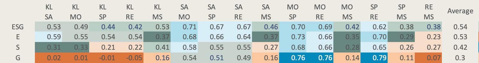 Correlation between ESG ratings