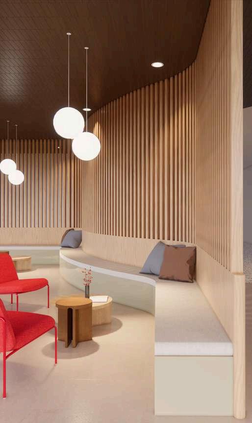 B-HALLWAYSEATINGNOOKSWITHSOUND DAMPENINGMATERIALSTOMITIGATENOISEIN HALLWAYSANDCREATEQUIETSPACESFOR INDIVIDUALSTOREST.*