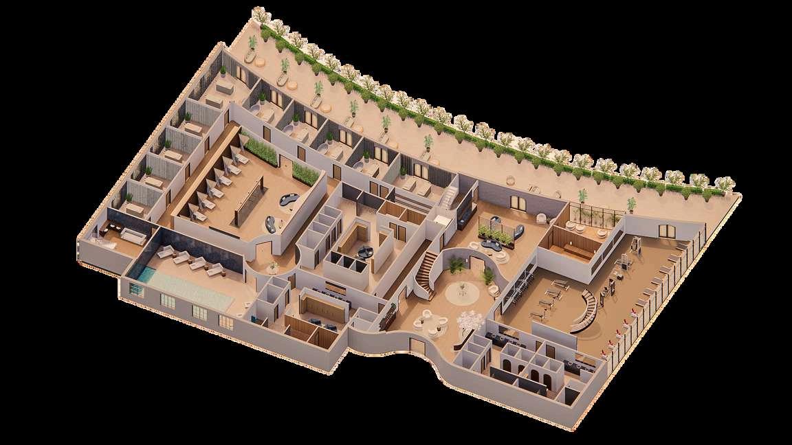 create a good system of wayfinding for guests to access all points of the property with ease need: 40 cottages (of different sizes), lobby, retail space, wine bar, restaurant, venue space