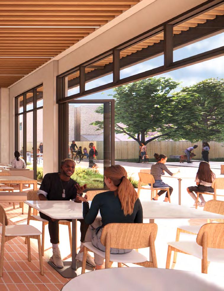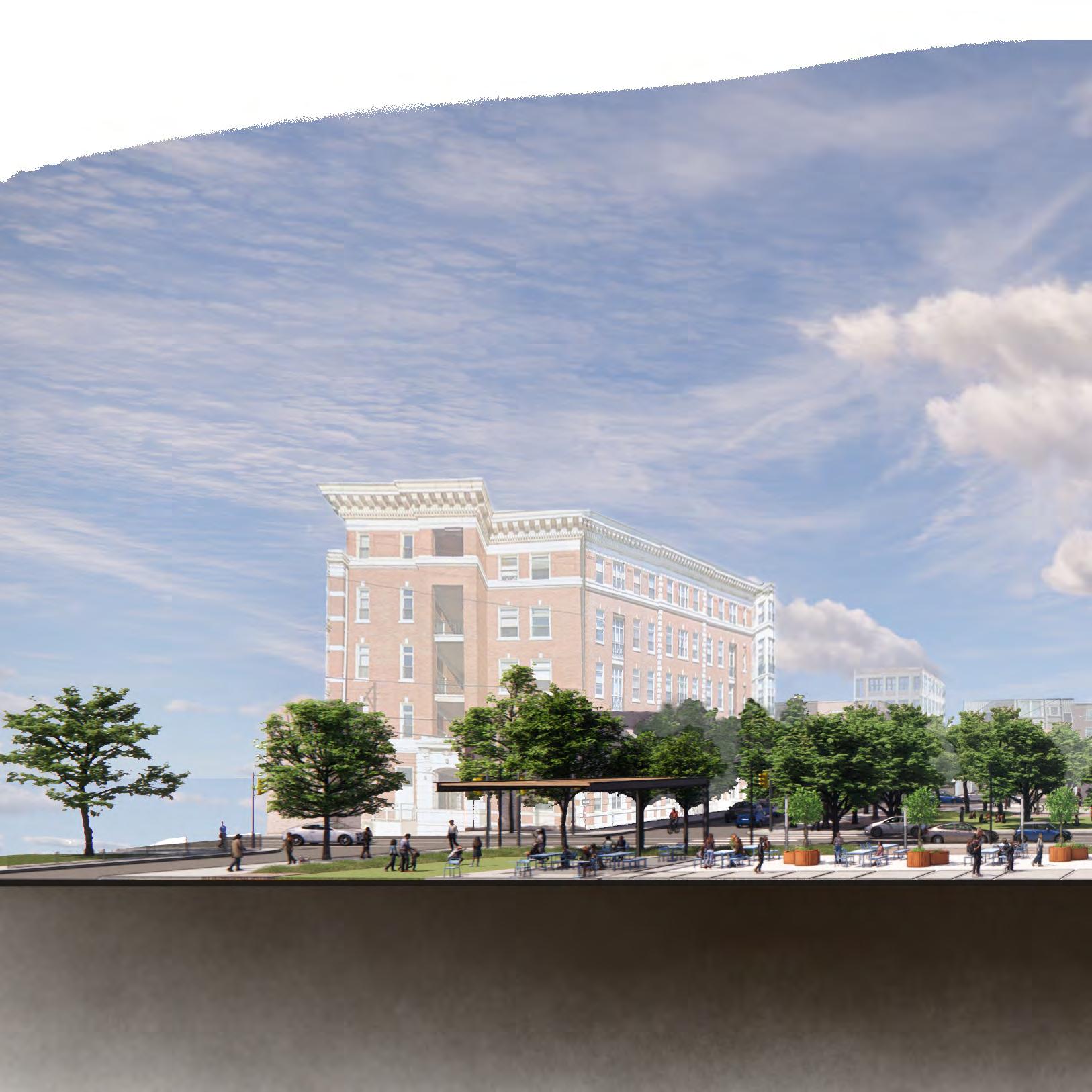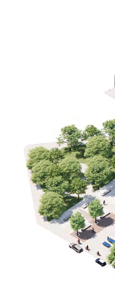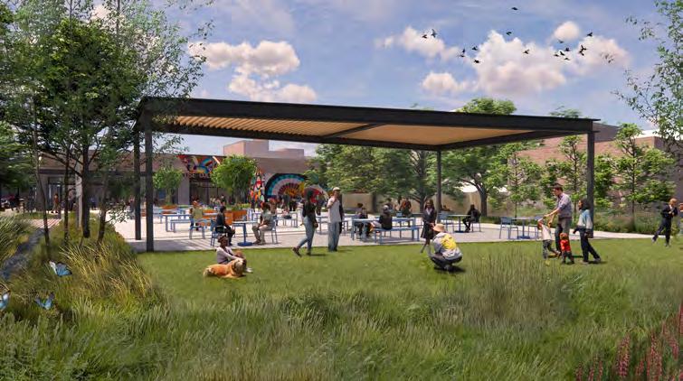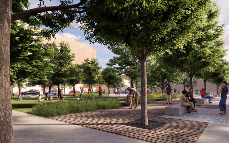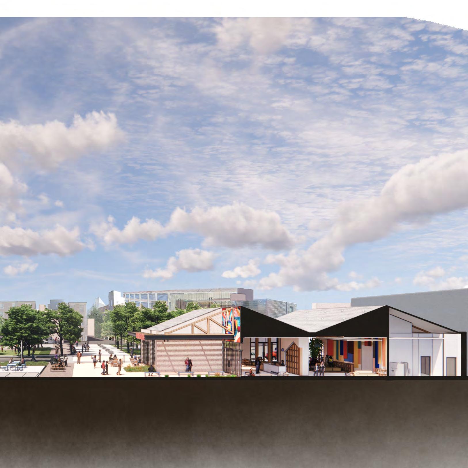 Across from the hub is an existing park. To improve the connection, the park was redesigned to allow the two to activate each other.