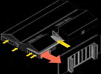 The primary entry approach of the community center introduces the main interior-exterior connection by opening up the exterior walls both visually and physically.
