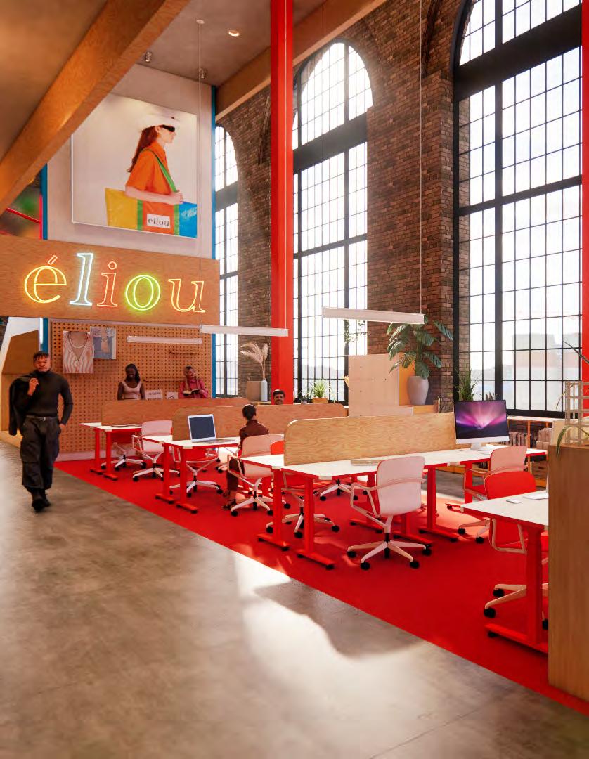 éliouis a fashion business that fuses the traditional with the contemporary by carefully balancing the spirit of playfulness with modern design. Pieces are always hand-made using natural materials, ensuring no two pieces are truly alike. The concept of this brand is able to translate directly to the office design creating a playful, modern atmosphere for the employees of this company.