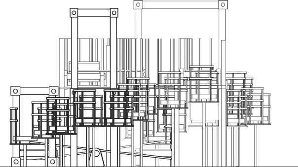 The seesaw platform stick together and creates a chain reaction. Container act as linkage for children to slide to other spaces.