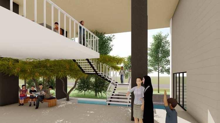 The proposed veranda acting as frontage for entrance of the building and create inkage to entrance to threshold and civic building nearby nearby.