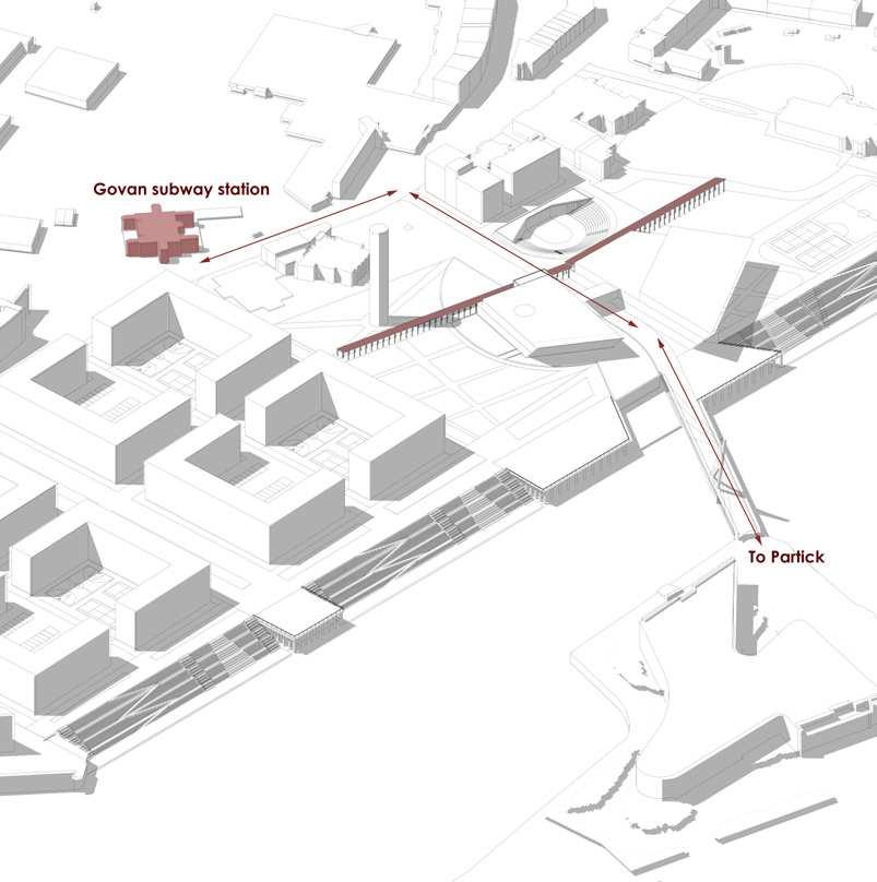 Water Row sits at the heart of Central Govan overlooking the RIver Clyde, Govan Cross, the Riverside Estate and Govan Old Churchyard. A Water Row A number of vital civic building and places are located in and around the site. It was once clustered with tenement blocks and shipyard but till today, the site. It most of them had been demolised and being left with negative space such as carpark and showpeople yards.